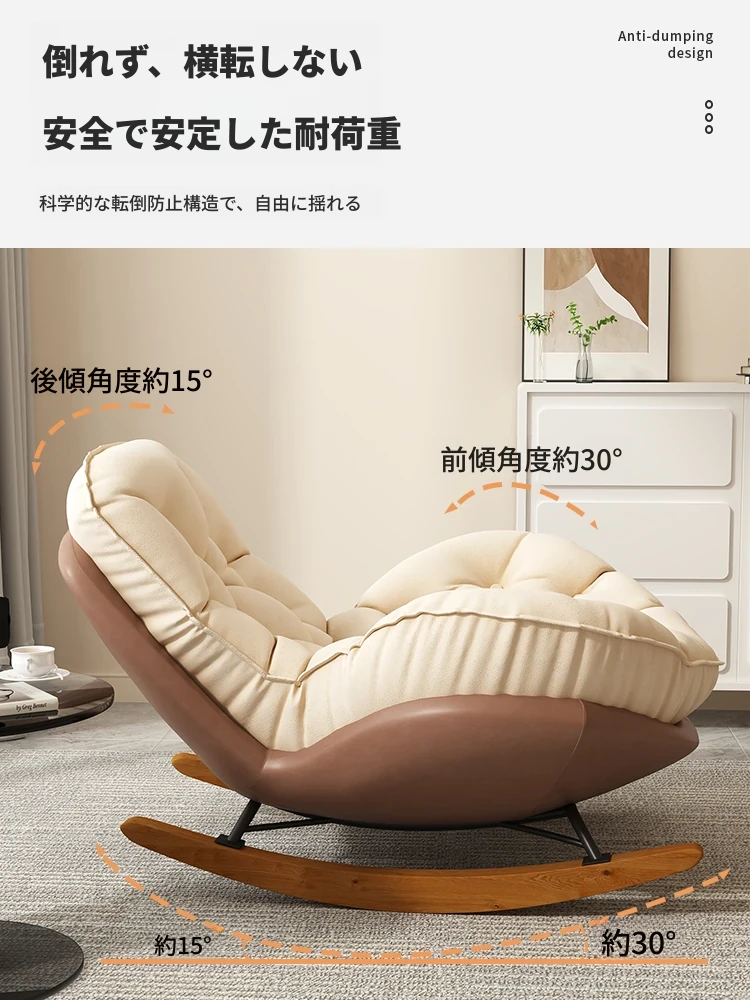 リラックスできる懶人ソファ|寝転んで快適!揺れる一人用リクライニングチェア|バルコニーや寝室にぴったりの小型ソファ|お部屋やリビングでくつろぎのひとときを!