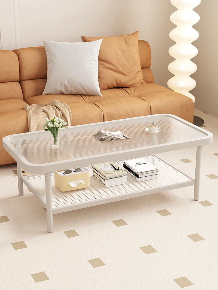 クリーム風リビングテーブル 小型住宅向け 2023年新作 モダンシンプル 長虹ガラス 人気の簡易ティーテーブル