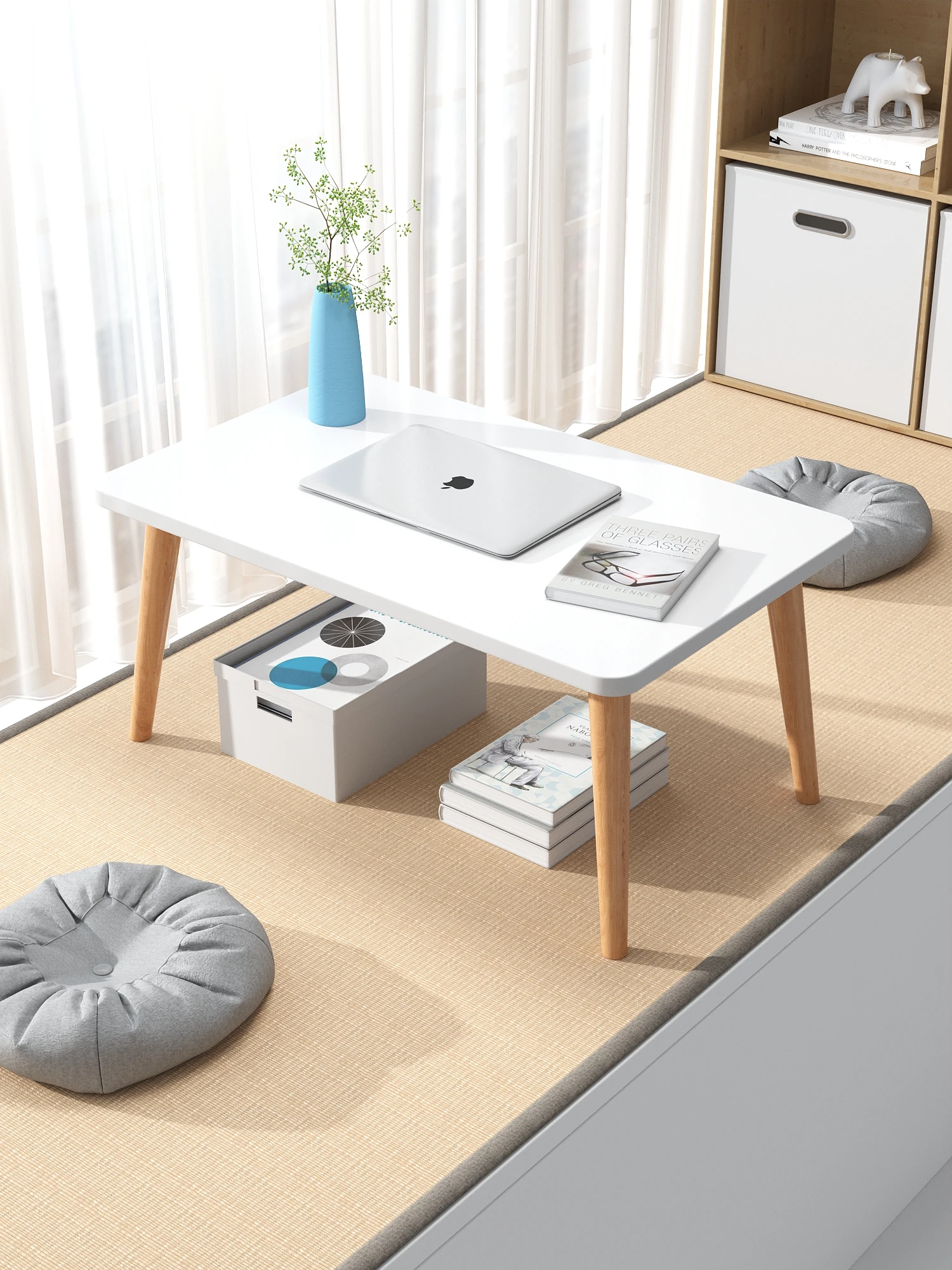 折りたたみ式和風タタミ茶卓 - 古風で禅の雰囲気漂う窓辺の小卓。寝室や座り込みスタイルにぴったりのクリエイティブなバルコニー用ローテーブル。あなたの空間に癒しをプラス!