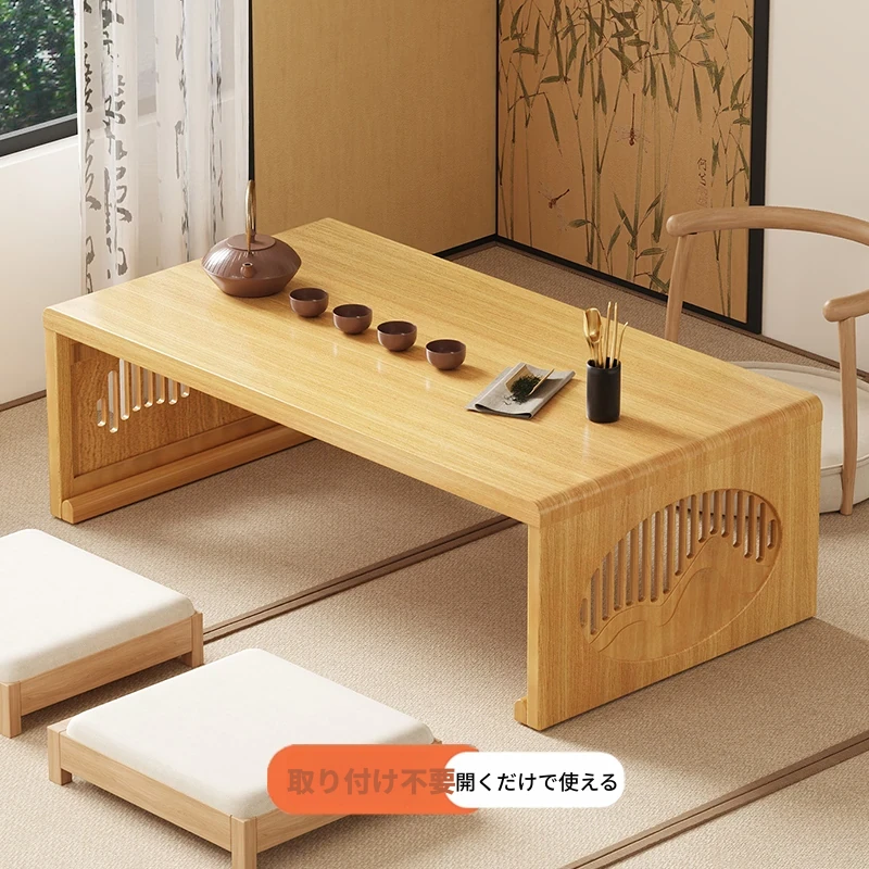 折りたたみ畳テーブル - 古風なデザイン、窓辺や寝室にぴったり!座ってリラックスできる中華風のクリエイティブな禅スタイルのローテーブル。バルコニーでも大活躍!
