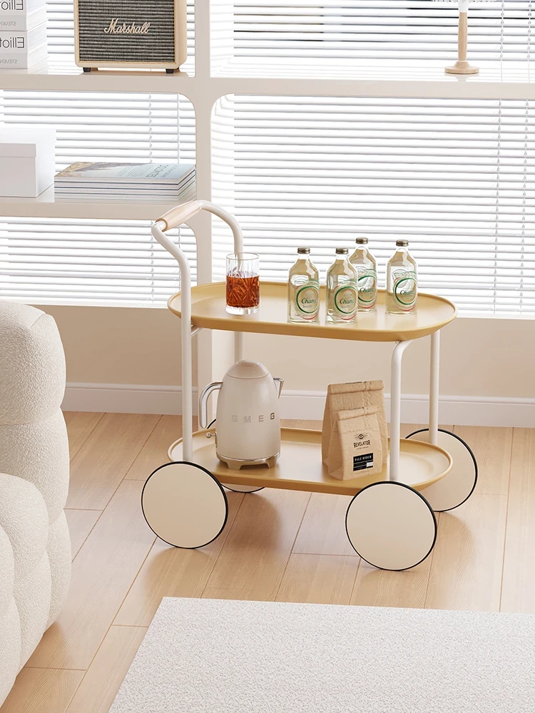 移動可能な小さなサイドテーブル!おしゃれなミニキャリーカート風のクリーム色インスタ映えデザイン✨クリエイティブなサイドテーブルで、お部屋を素敵に演出しよう!