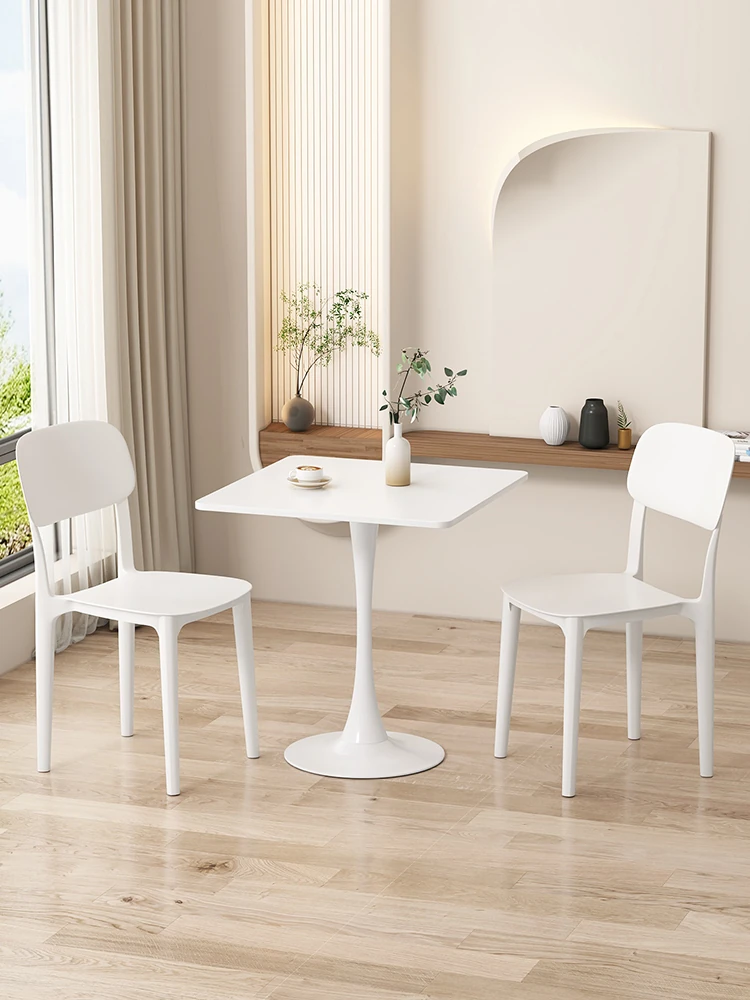 クリーミー風スクエアテーブル - リビングや小型住宅、バルコニーに最適なダイニングテーブル兼ティーテーブル。おしゃれなカフェやオフィスにもぴったりなコンパクトなデザイン!