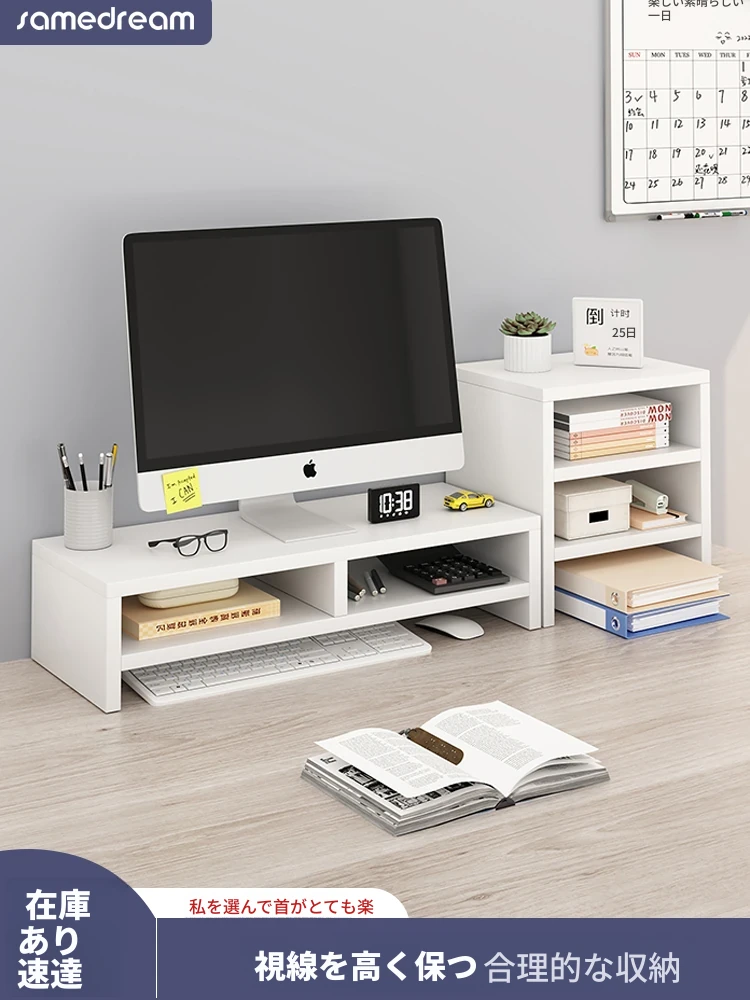 三夢デスクトップPC用モニター台 - スタイリッシュなデザインでデスク周りをスッキリ整理!ノートパソコンスタンドとしても最適。オフィスや自宅での作業効率をアップさせる収納ラック!