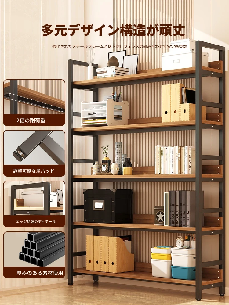 スタイリッシュなスチールウッド製の多層書棚 - 家庭用フロアタイプ、リビングルームの収納や展示に最適!子供部屋にもぴったりなデザインで、すっきりとした収納を実現します。