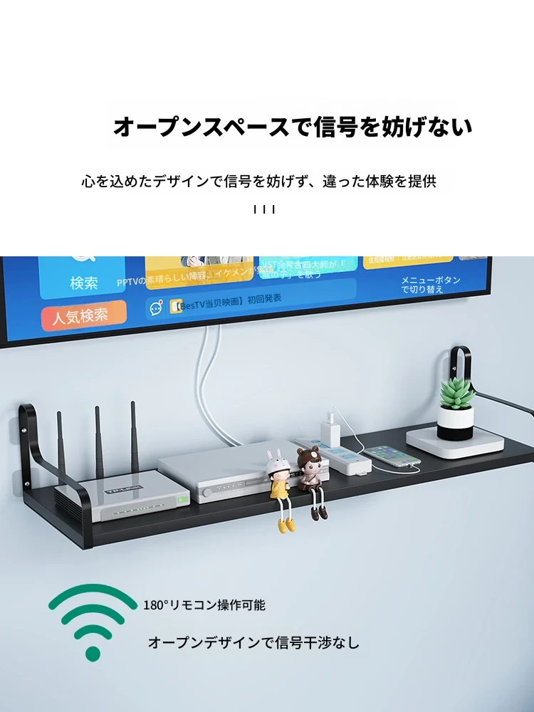 三夢Wi-Fi壁掛け収納ラック - ルーターやテレビボックスをスッキリ収納!ネジ不要の取り付け簡単!スタイリッシュなアイアンデザインで、お部屋をおしゃれに演出します。