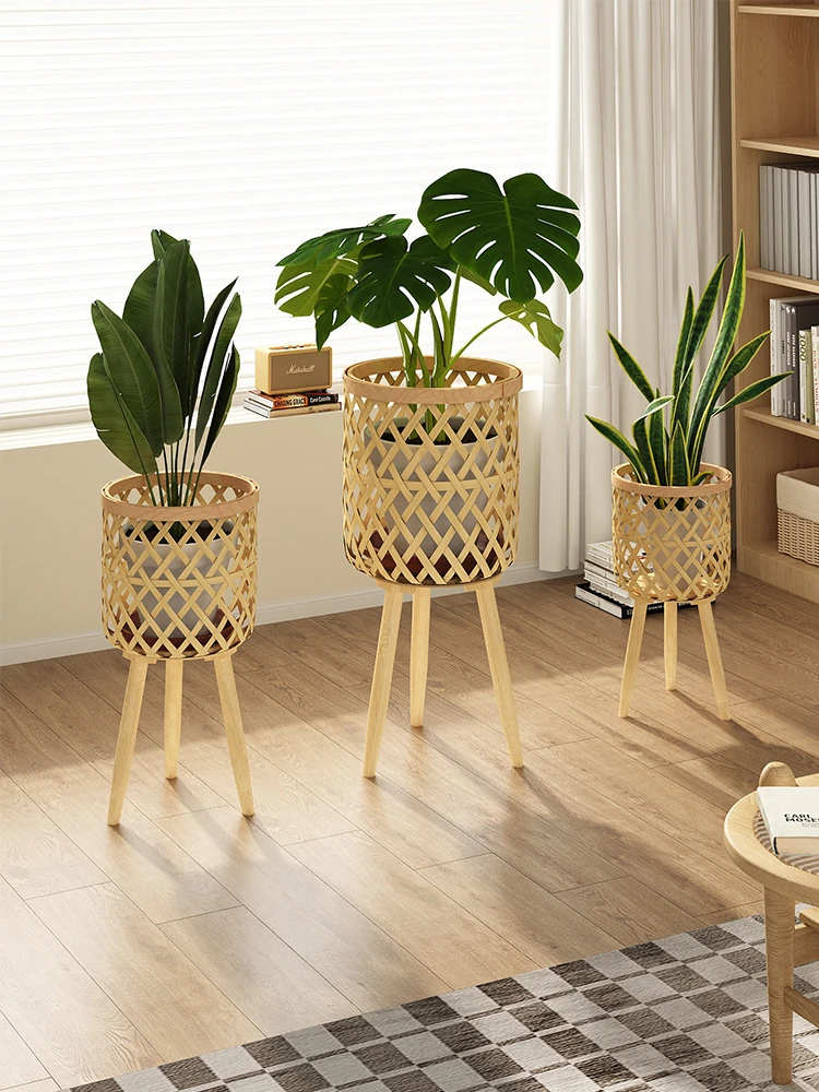 2025年新作!夢のようなフラワースタンド - リビングルームにぴったりな床置き型プランターラック。おしゃれなラタン編みデザインで、バルコニーや室内に緑を添えます。あなたのスペースを華やかに演出!