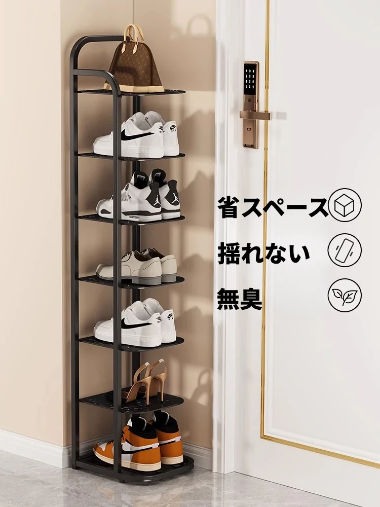 三夢アイアンシューズラック - おしゃれで省スペースの多層型スリムシューズ収納!玄関や室内にぴったりな小型シューズキャビネットで、スッキリとした空間を実現!