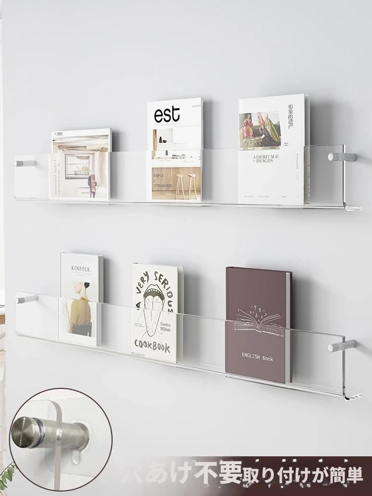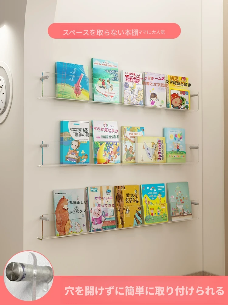 アクリル壁掛け本棚 - おしゃれな壁面収納で透明感あふれる雑誌や絵本を美しくディスプレイ!部屋をスタイリッシュに演出し、スッキリ整理整頓。あなたのインテリアにぴったりのアイテムです!