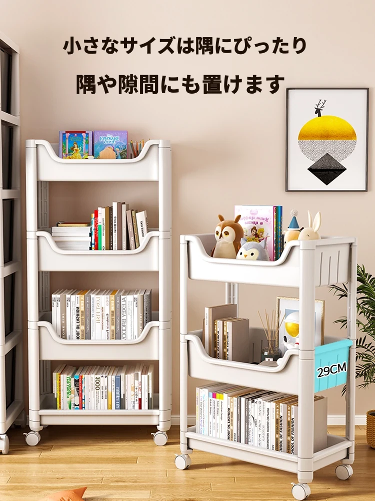 キャスター付き移動式ラック!簡単に組み立てられる子供用ブックシェルフ。読書やおやつの収納に最適!部屋をすっきり整理整頓。おしゃれで便利な収納アイテムです!