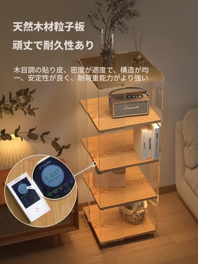 360度回転可能なアクリルと天然木製のフロア式書棚!おしゃれで実用的な多層収納ラック、家庭用にも最適!移動も簡単で、あなたの大切な本や雑貨を美しく展示します。