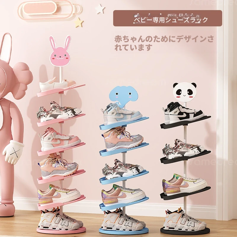 三夢キッズシューズラック - スペースを節約する多層型のキャラクター付きベビー専用スリムシューズラック。玄関を可愛く整理整頓!お子様の靴をスッキリ収納。