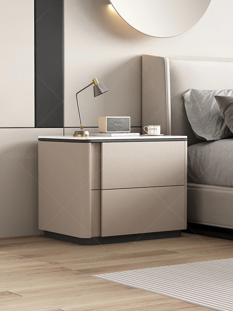 Modern Minimalist Solid Wood Nightstand - New Elegant Rock Panel Bedroom Cabinet for Luxurious Bedside Storage