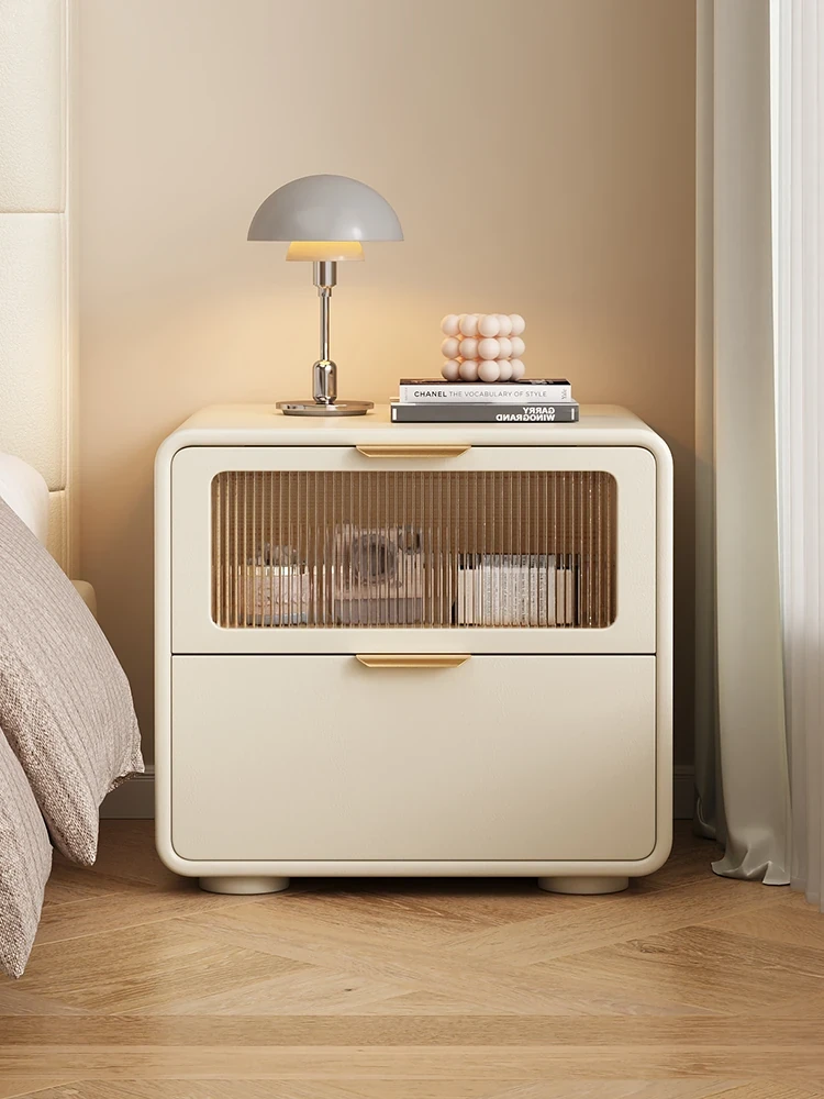 Dreamy Solid Wood Nightstand - Creamy Minimalist Modern Bedside Cabinet for Your Bedroom, Chic Luxury Storage Solution