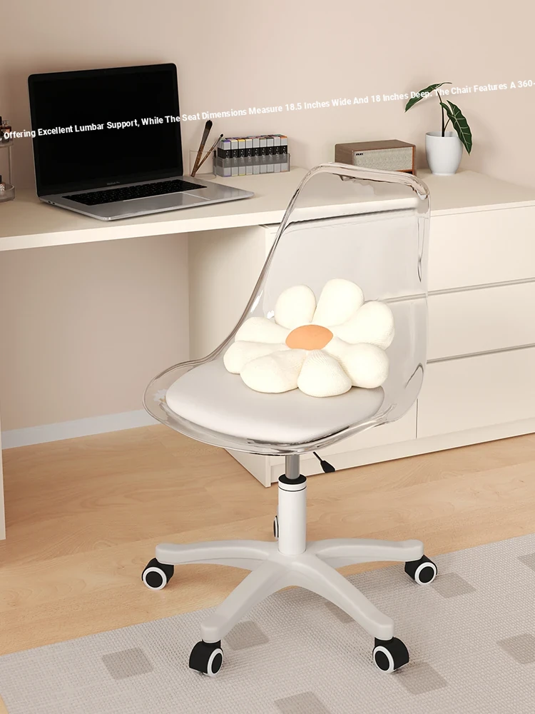 Ergonomic Computer Chair for Long Hours - Stylish Makeup Chair for Girls, Adjustable Swivel Desk Chair with Transparent Backrest, Perfect for Dorms and Study Sessions