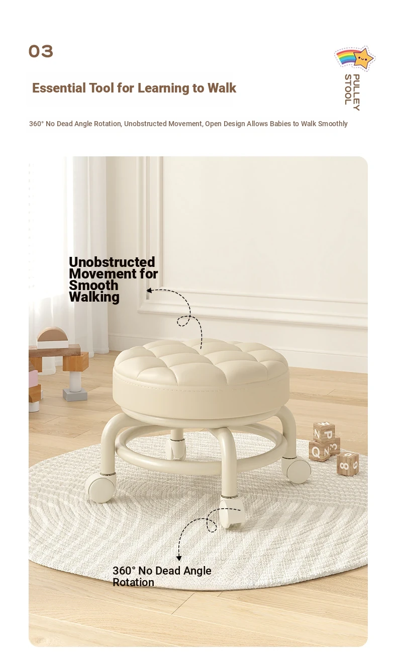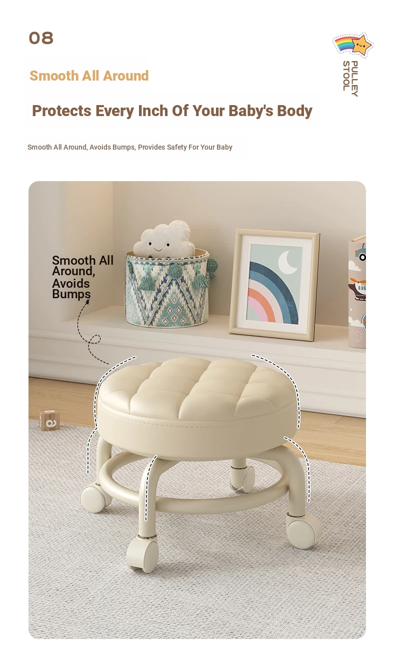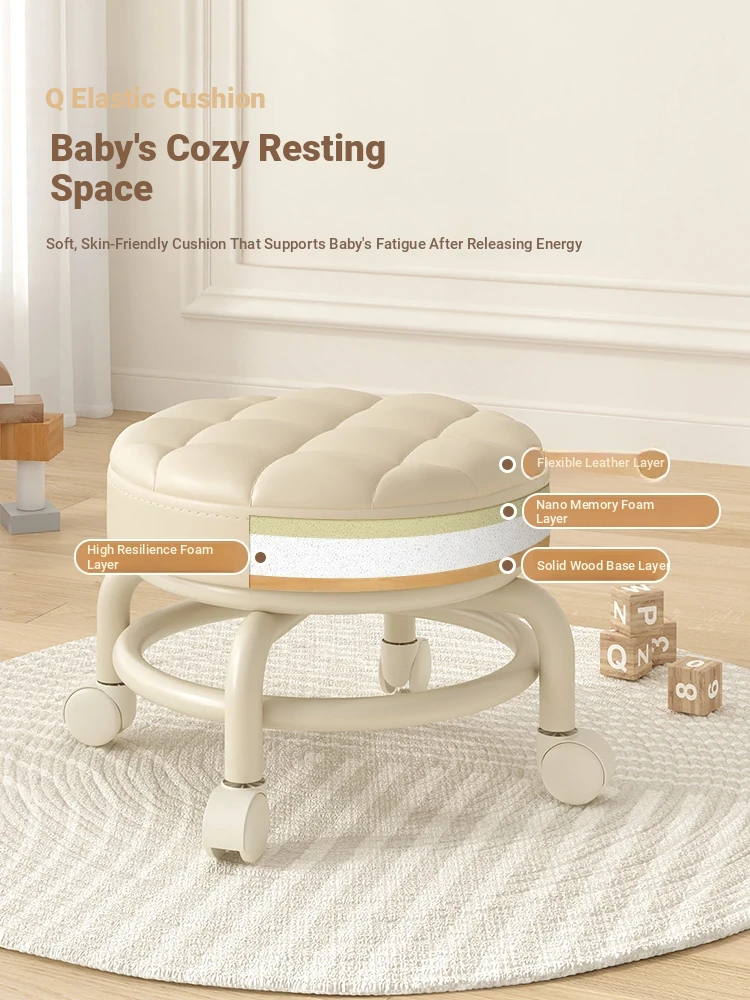 3Dream Universal Wheel Stool - Versatile Low Stool for Home, Living Room, Entryway Shoe Changing, and Toddler Learning. Perfect Round Bench for Kids and Family!