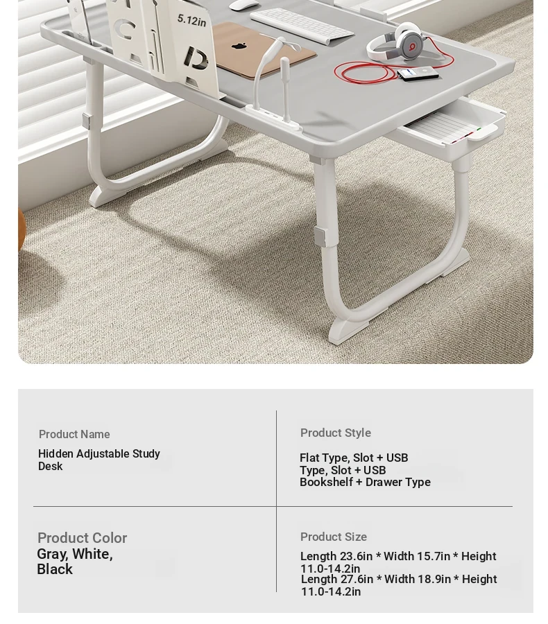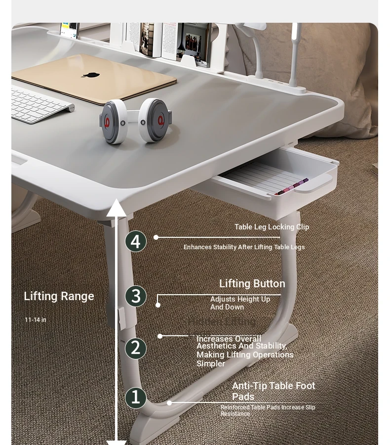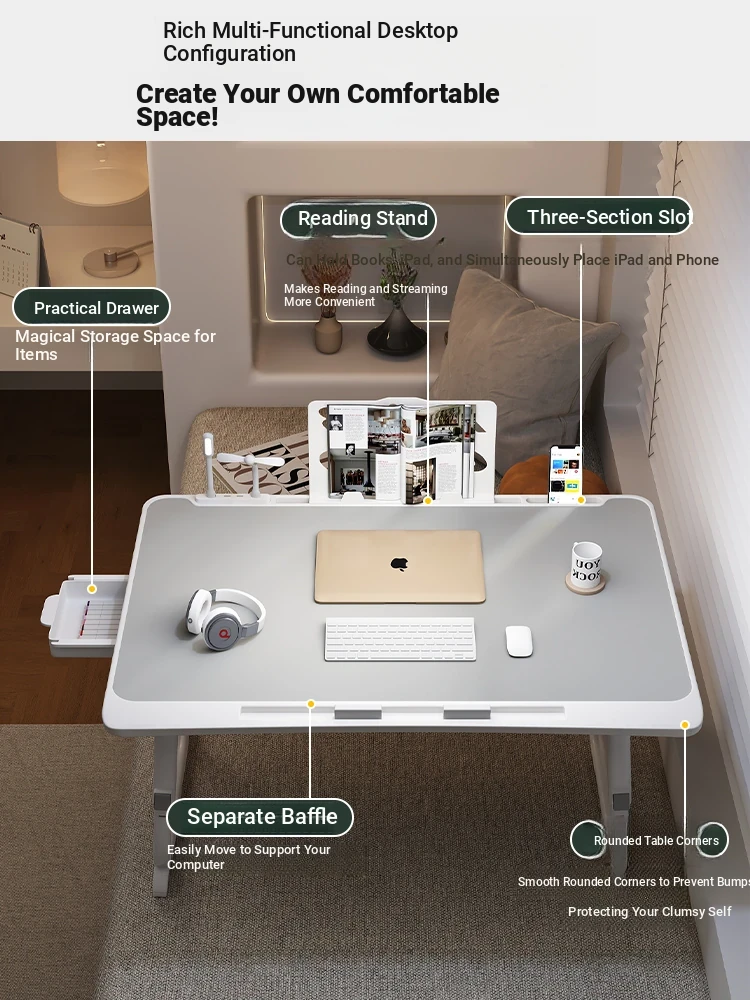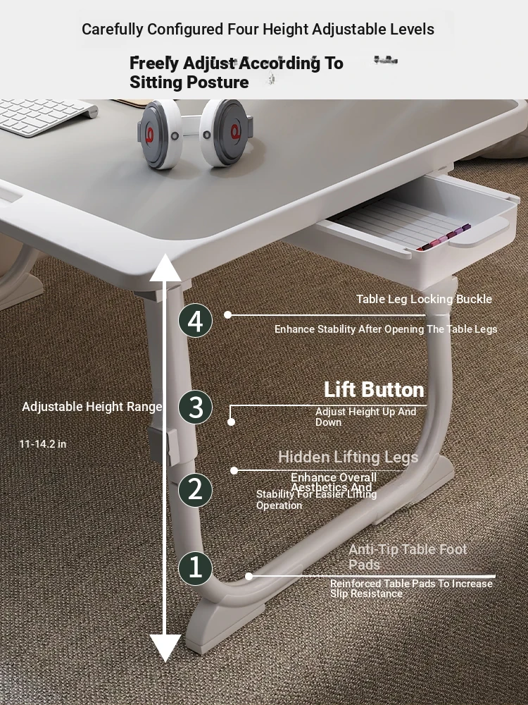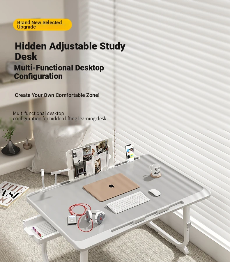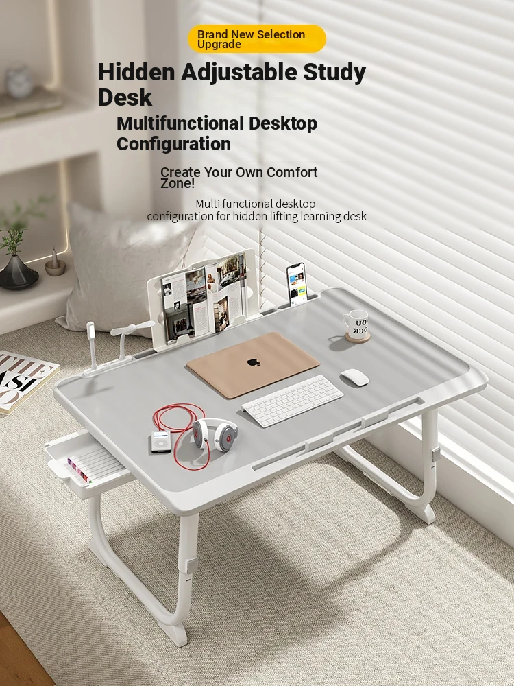 Adjustable Folding Bedside Table - Versatile Laptop Desk for Home, Bedroom, Office, and Dormitory Study. Perfect for Students and Cozy Spaces!