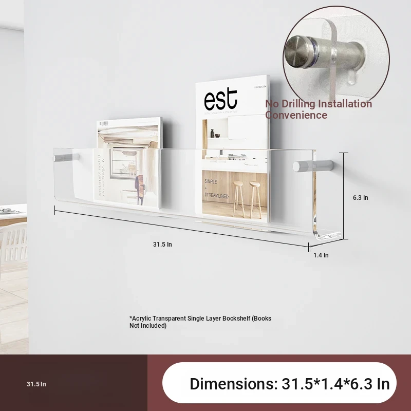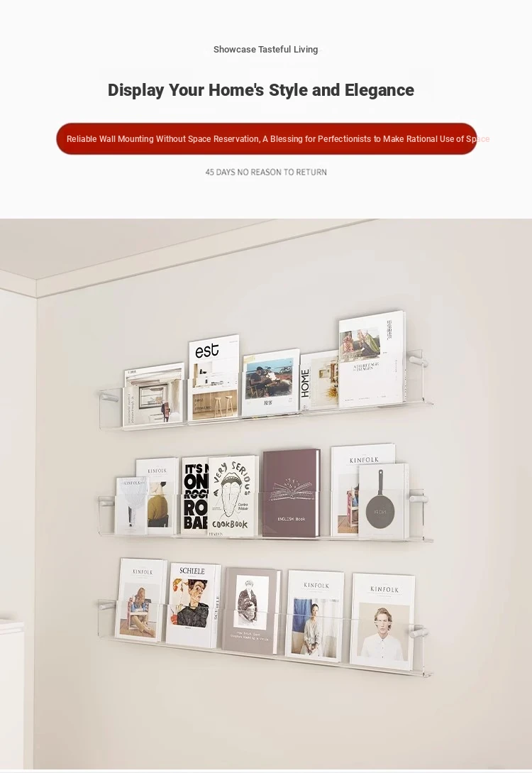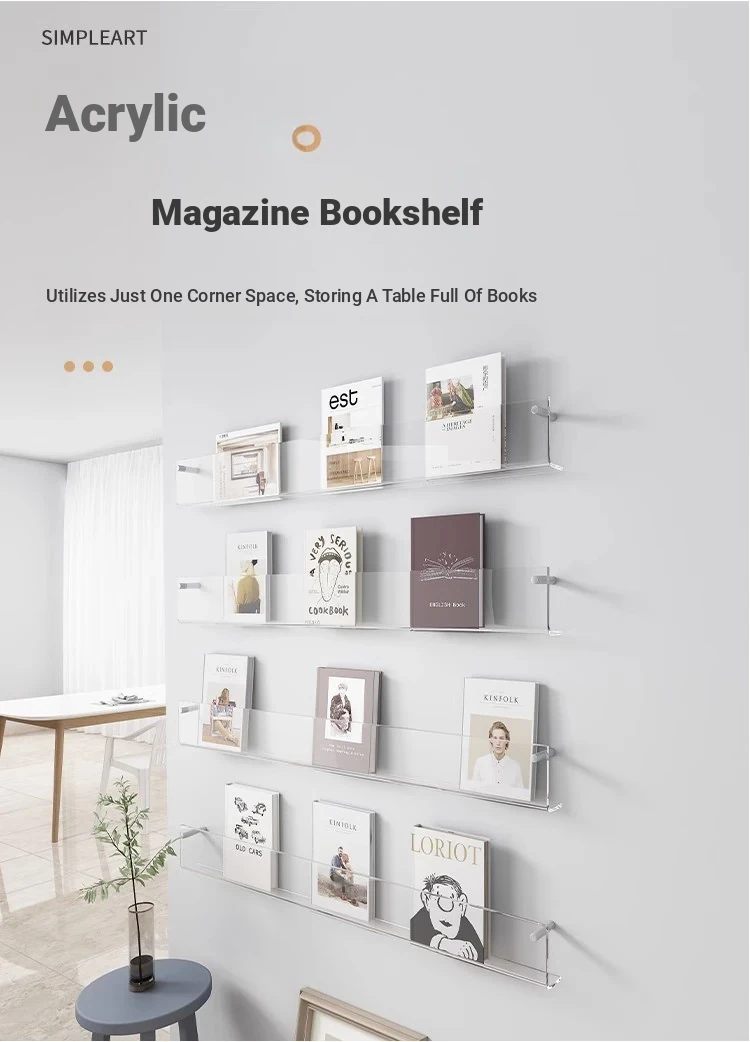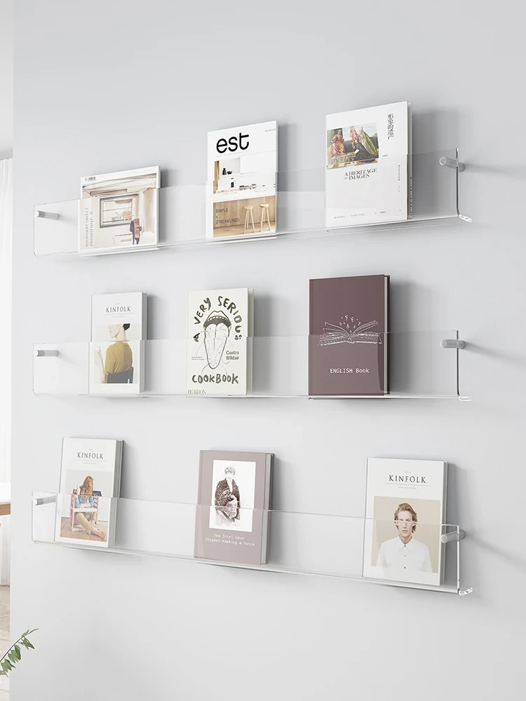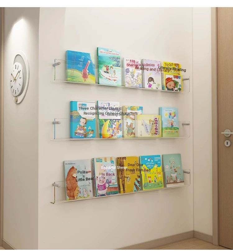 Creative Acrylic Wall-Mounted Bookshelf - Transparent Display Rack for Children's Books and Magazines - Stylish Wall Decor for Organized Storage