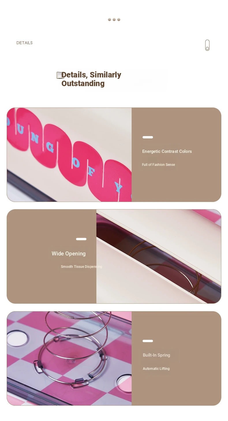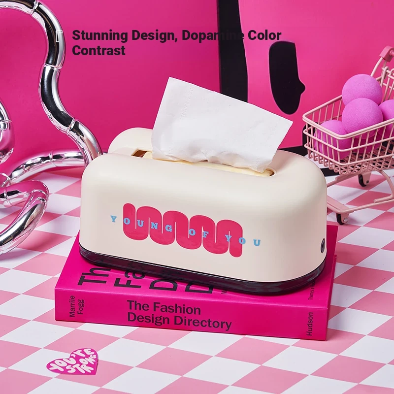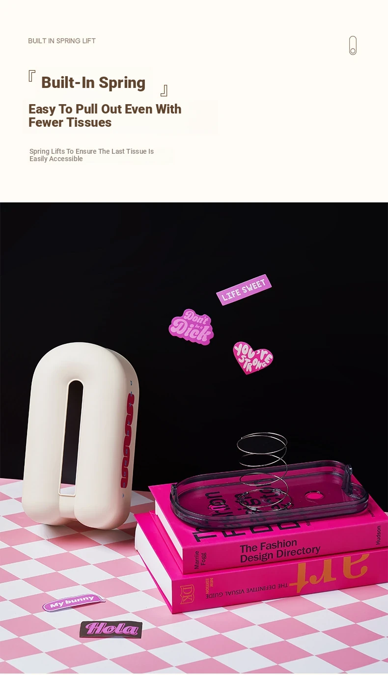 Dopamine Tissue Box with Elastic Holder - Premium Creative Design for Dining Tables, Cute Spring Tissue Dispenser for Stylish Living Room Décor