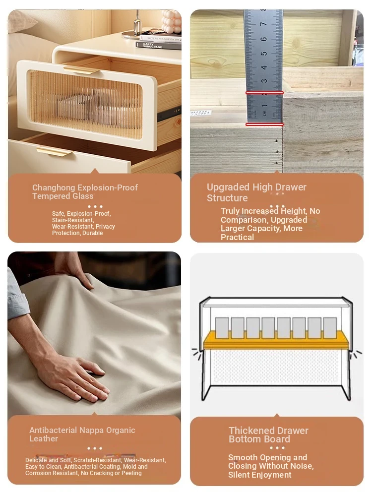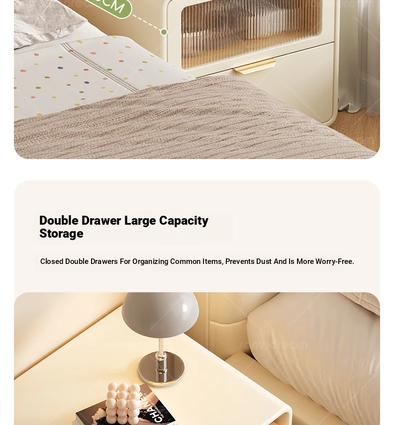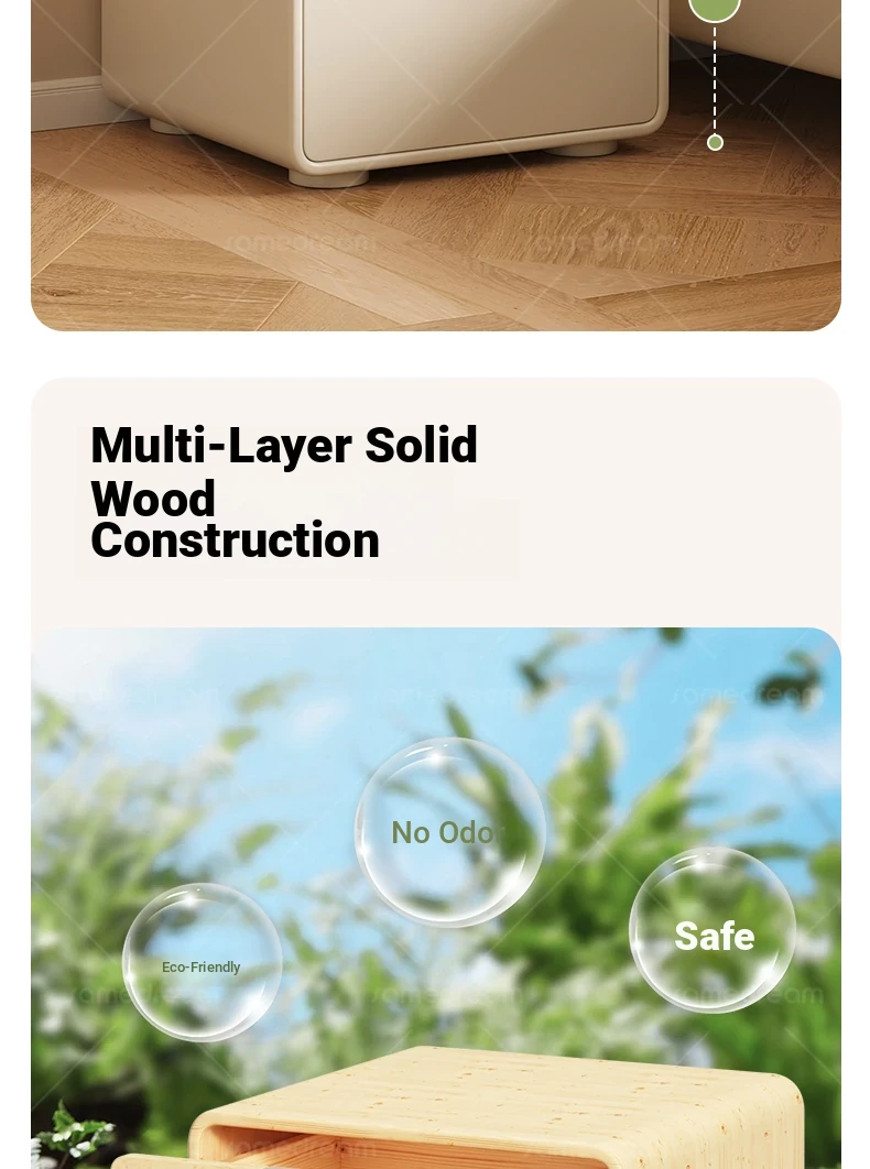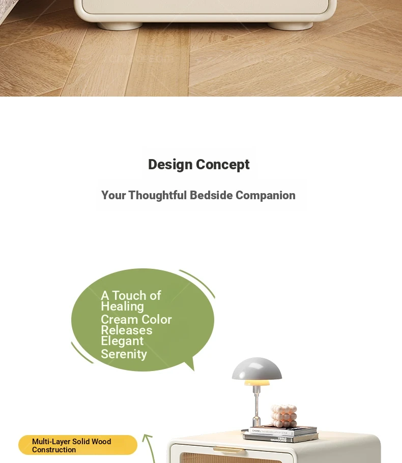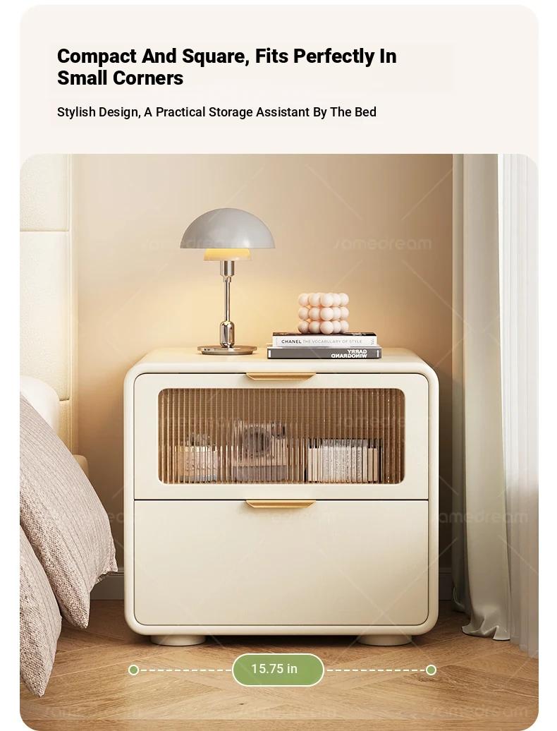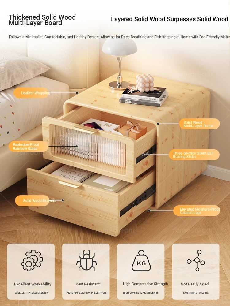 Dream Three 2025 New Solid Wood Nightstand - Minimalist Modern Compact Bedroom Storage Cabinet in Cream Style, Perfect for Narrow Bedside Use