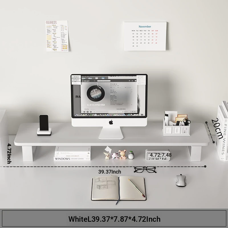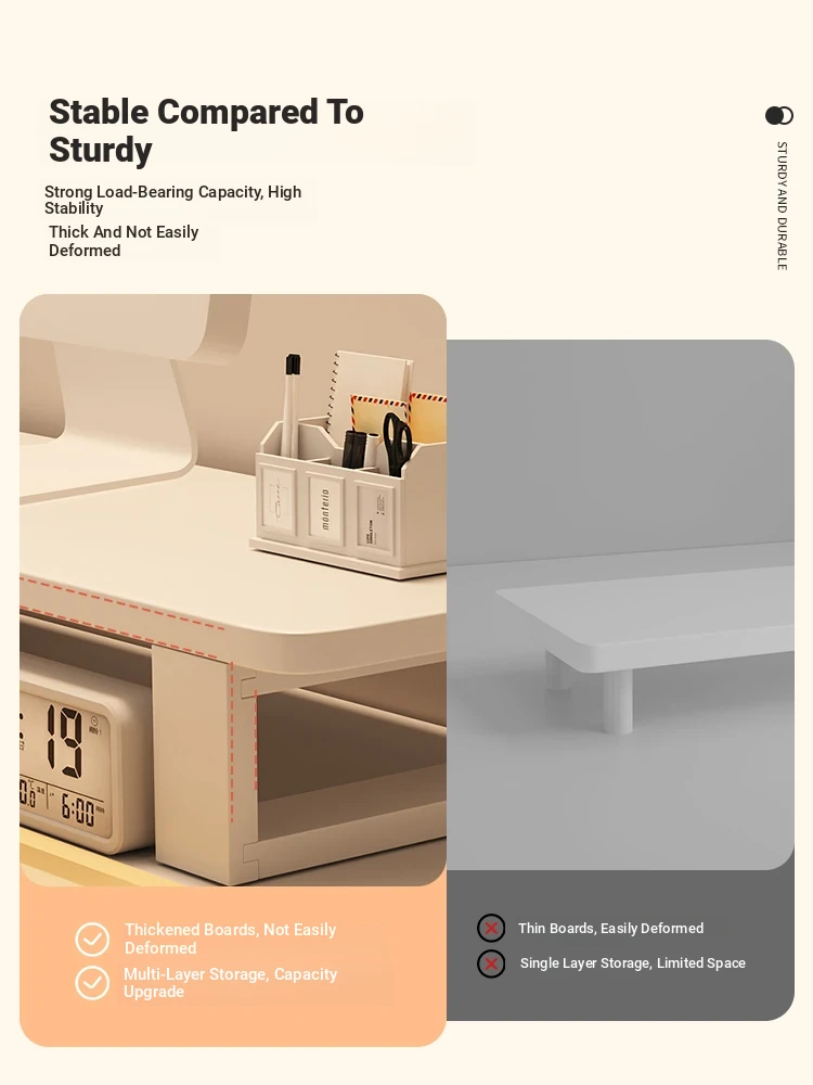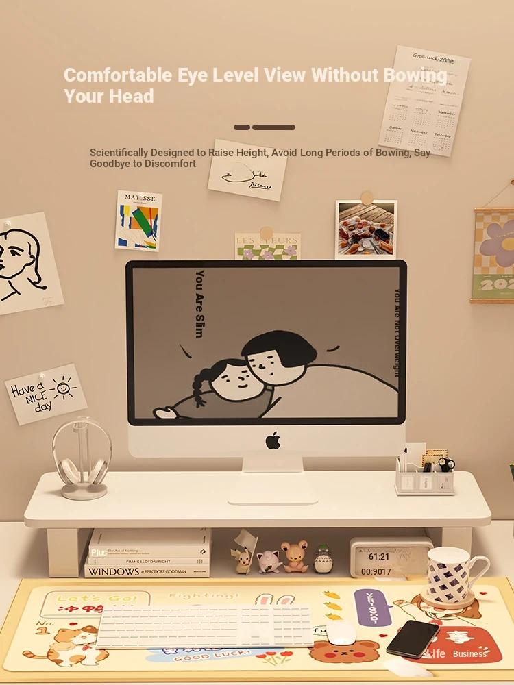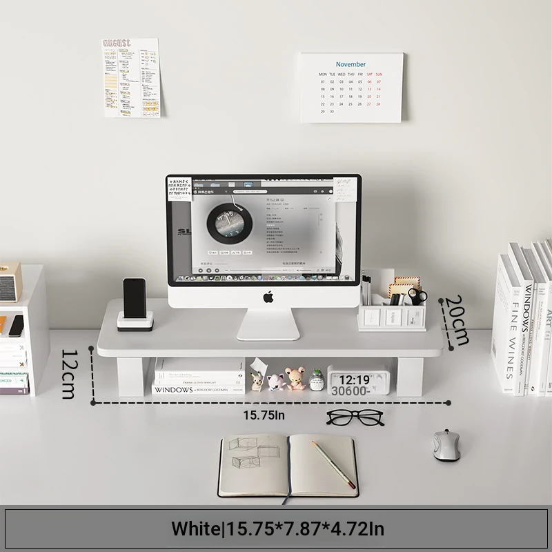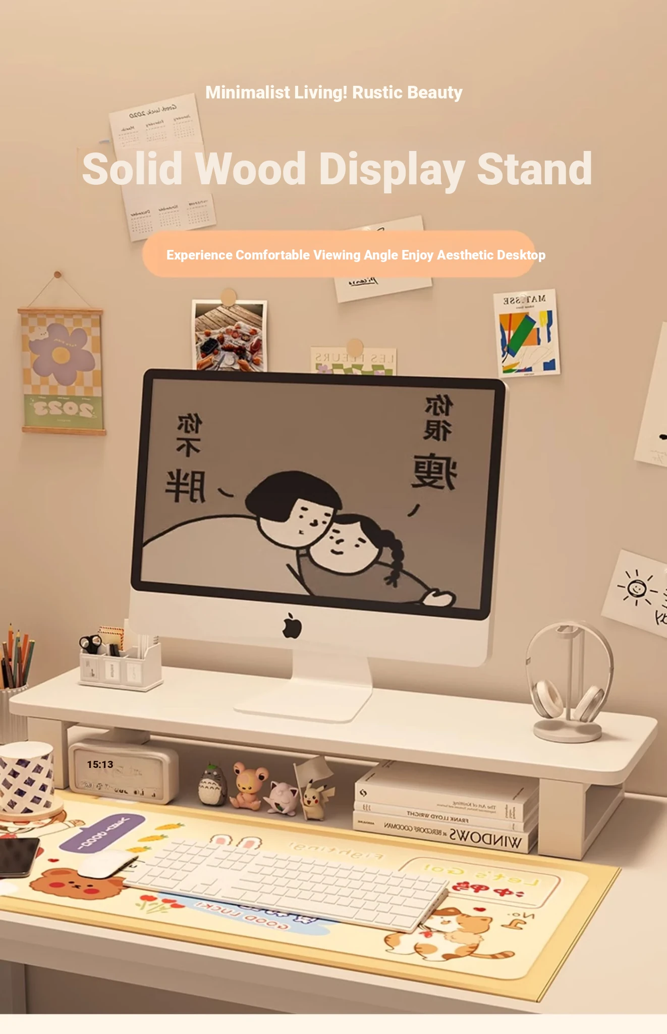 Dream Three Monitor Stand - Adjustable Height Desktop Organizer for Office Storage - Solid Wood Display Rack for Enhanced Workspace Efficiency