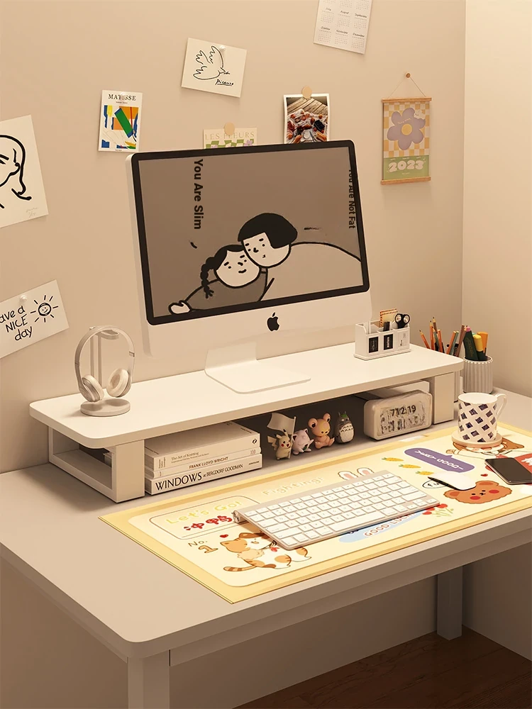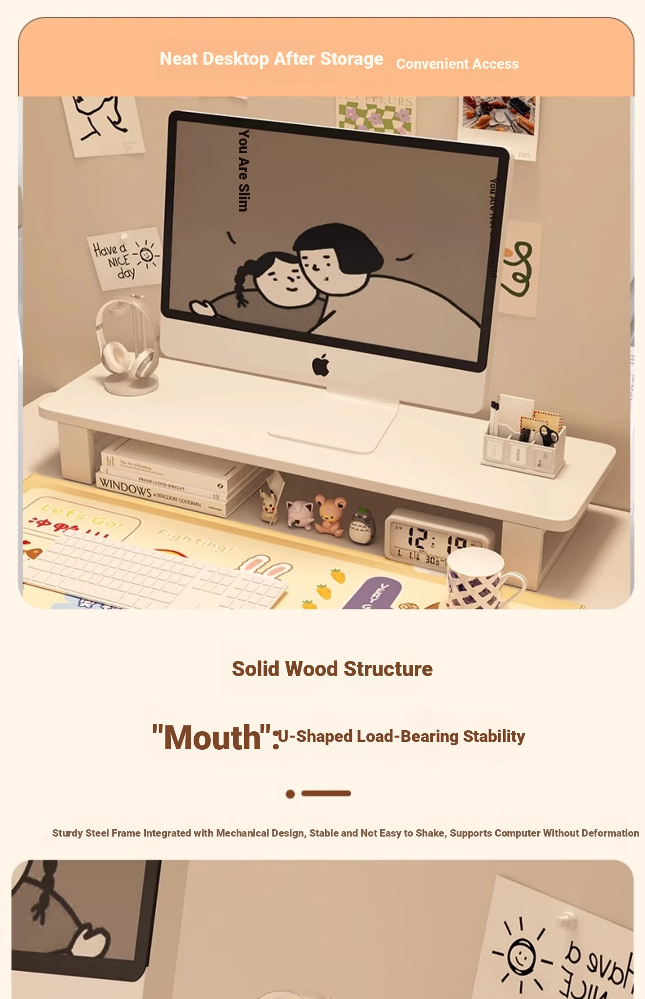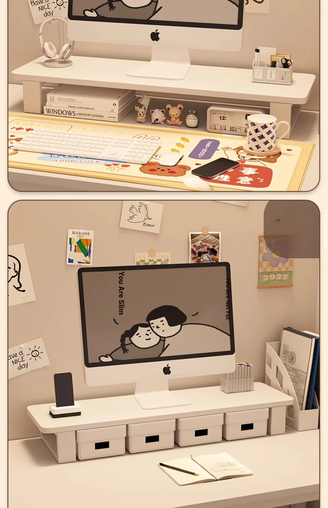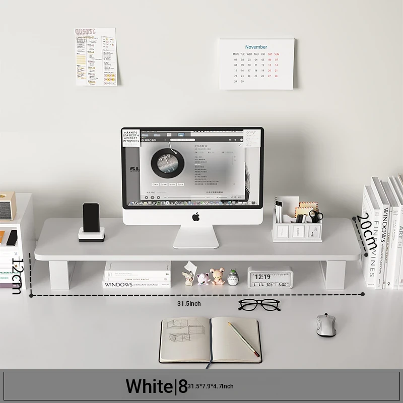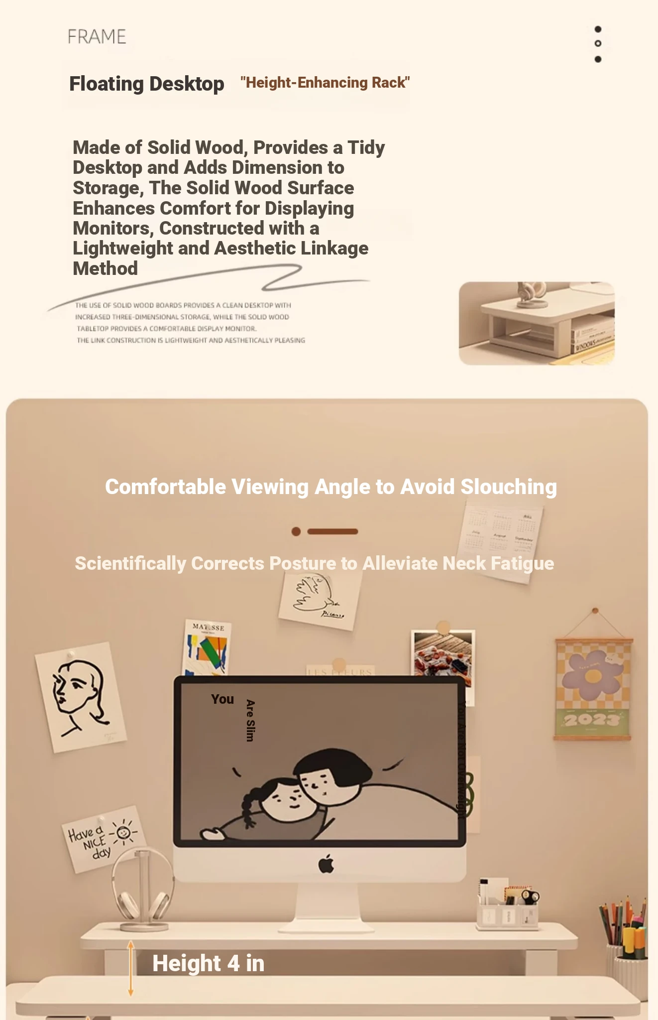 Dream Three Monitor Stand - Adjustable Height Desktop Organizer for Office Storage - Solid Wood Display Rack for Enhanced Workspace Efficiency