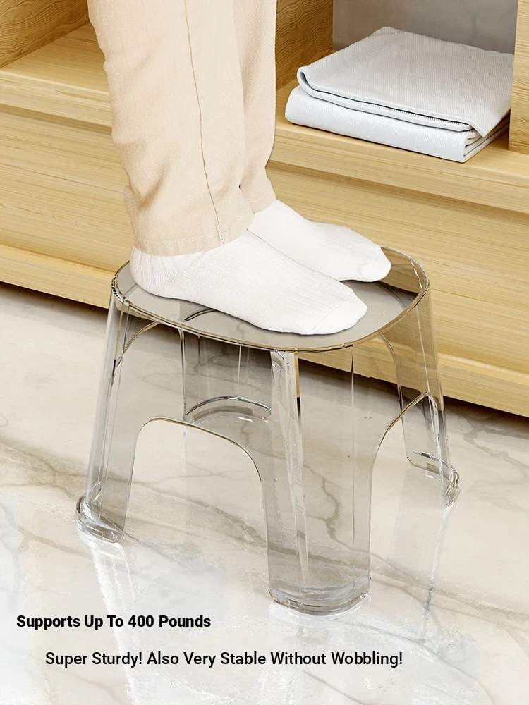 Dreamy Acrylic Transparent Stool – Stylish, Durable Plastic Footrest for Home Use, Perfect for Changing Shoes, Living Room, and Kids. Compact Round Stool for Versatile Seating.