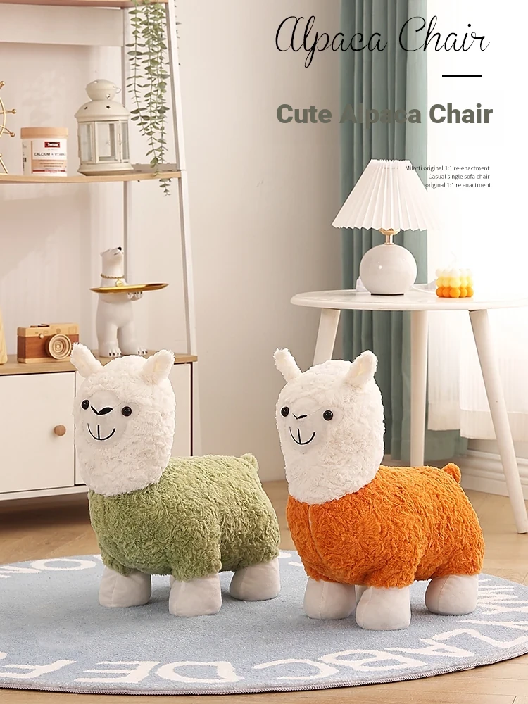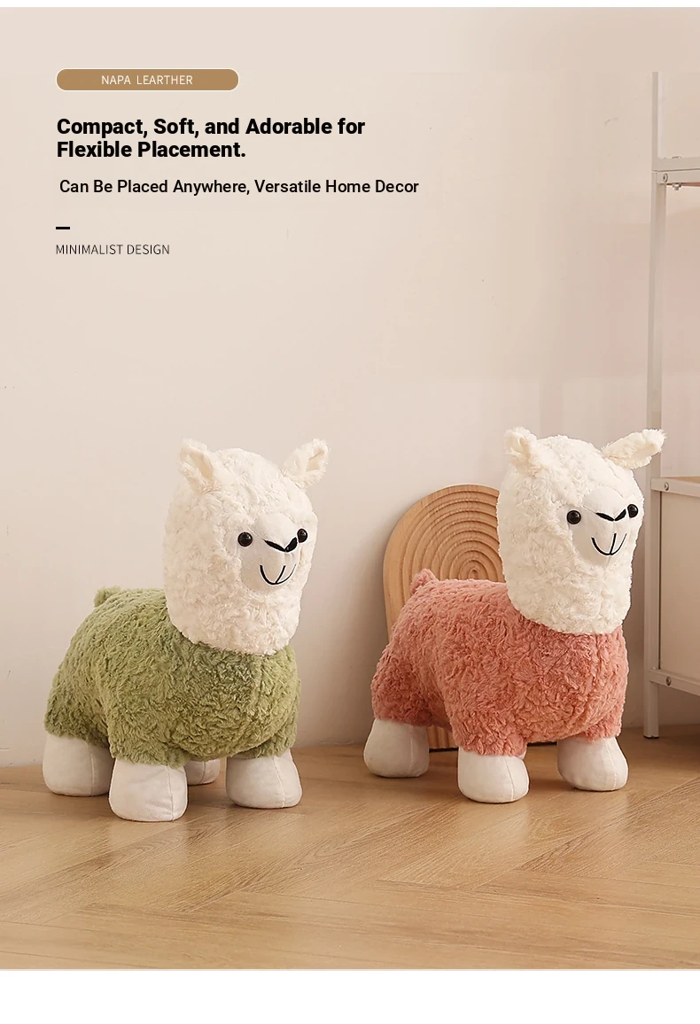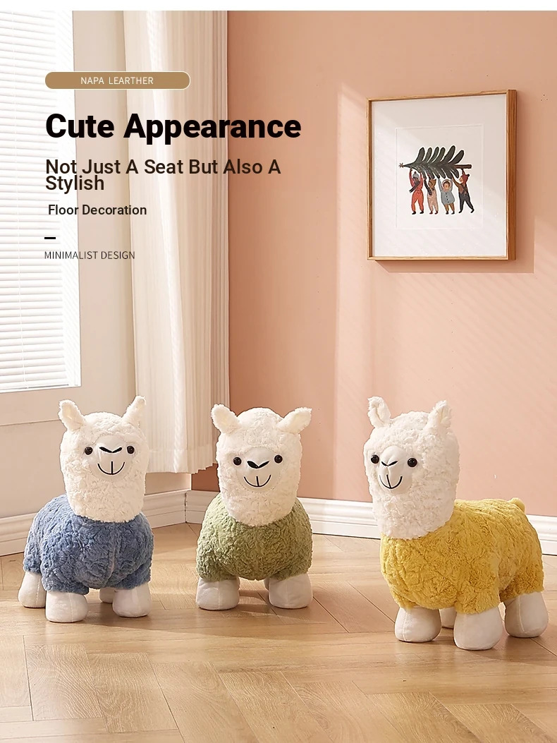Dreamy Alpaca Stool - Modern Minimalist Entryway Shoe Bench for Home Use, Comfortable Seating for Putting on Shoes, Perfect for Living Room or as a Cozy Footstool.