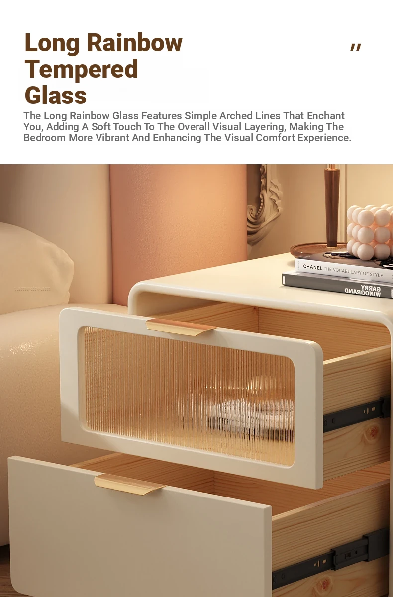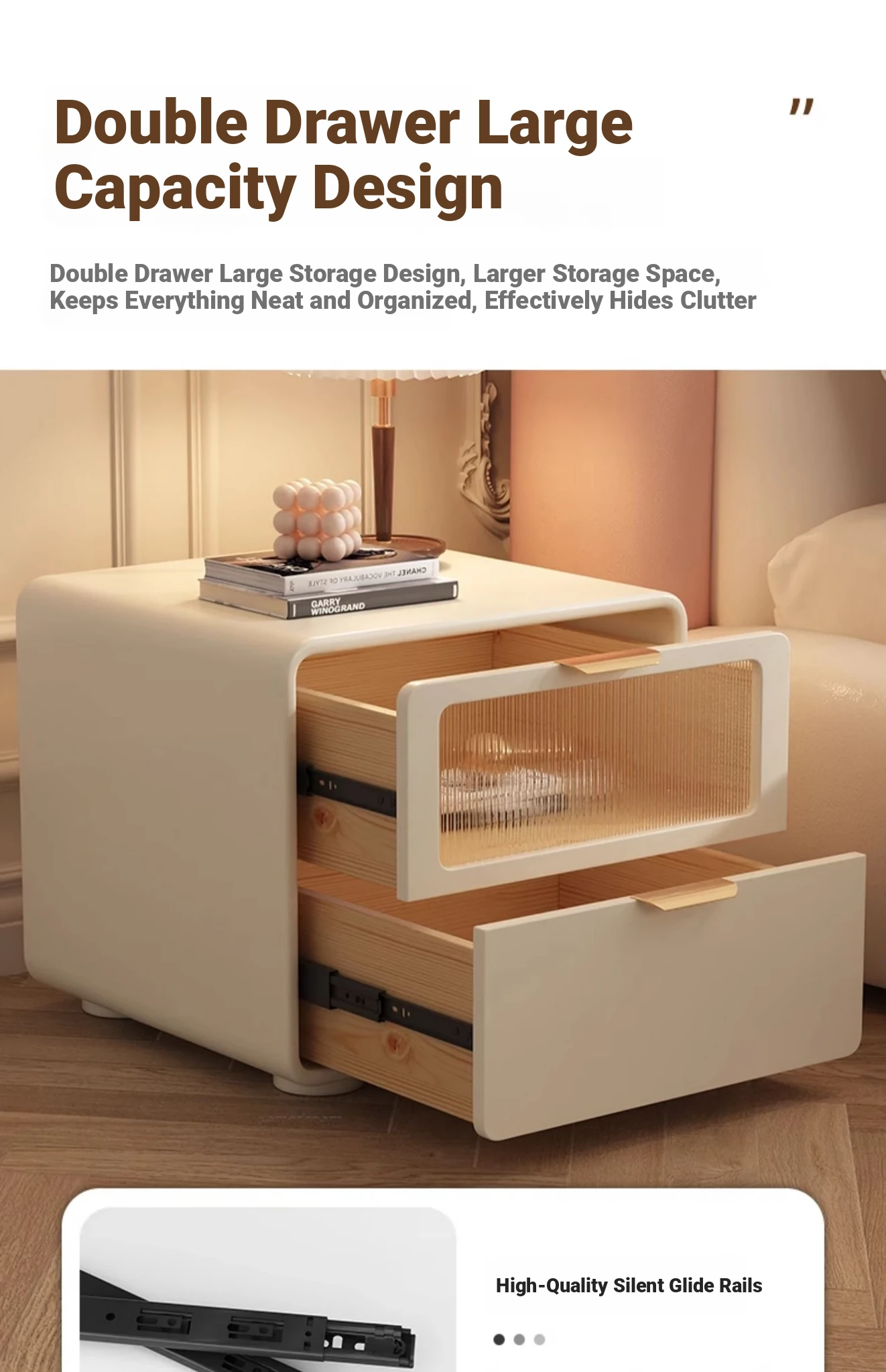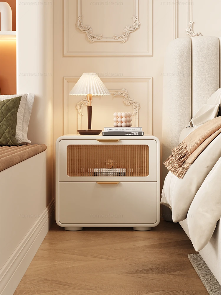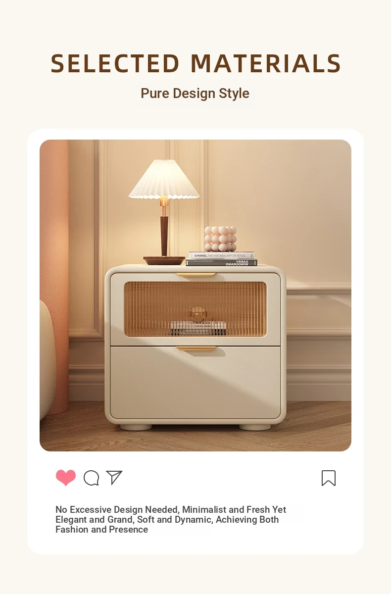 Dreamy Cream Solid Wood Nightstand - Modern Minimalist 2024 New Bedside Storage Cabinet for Bedroom, Perfect for Organizing Essentials