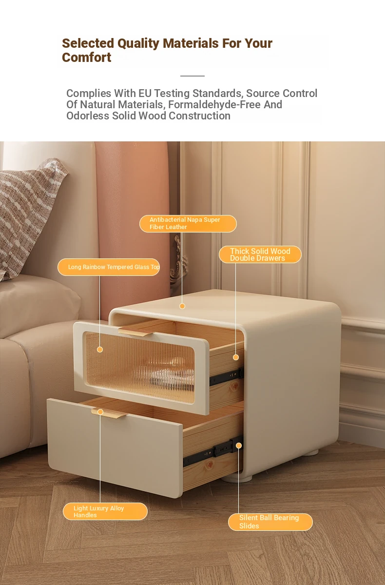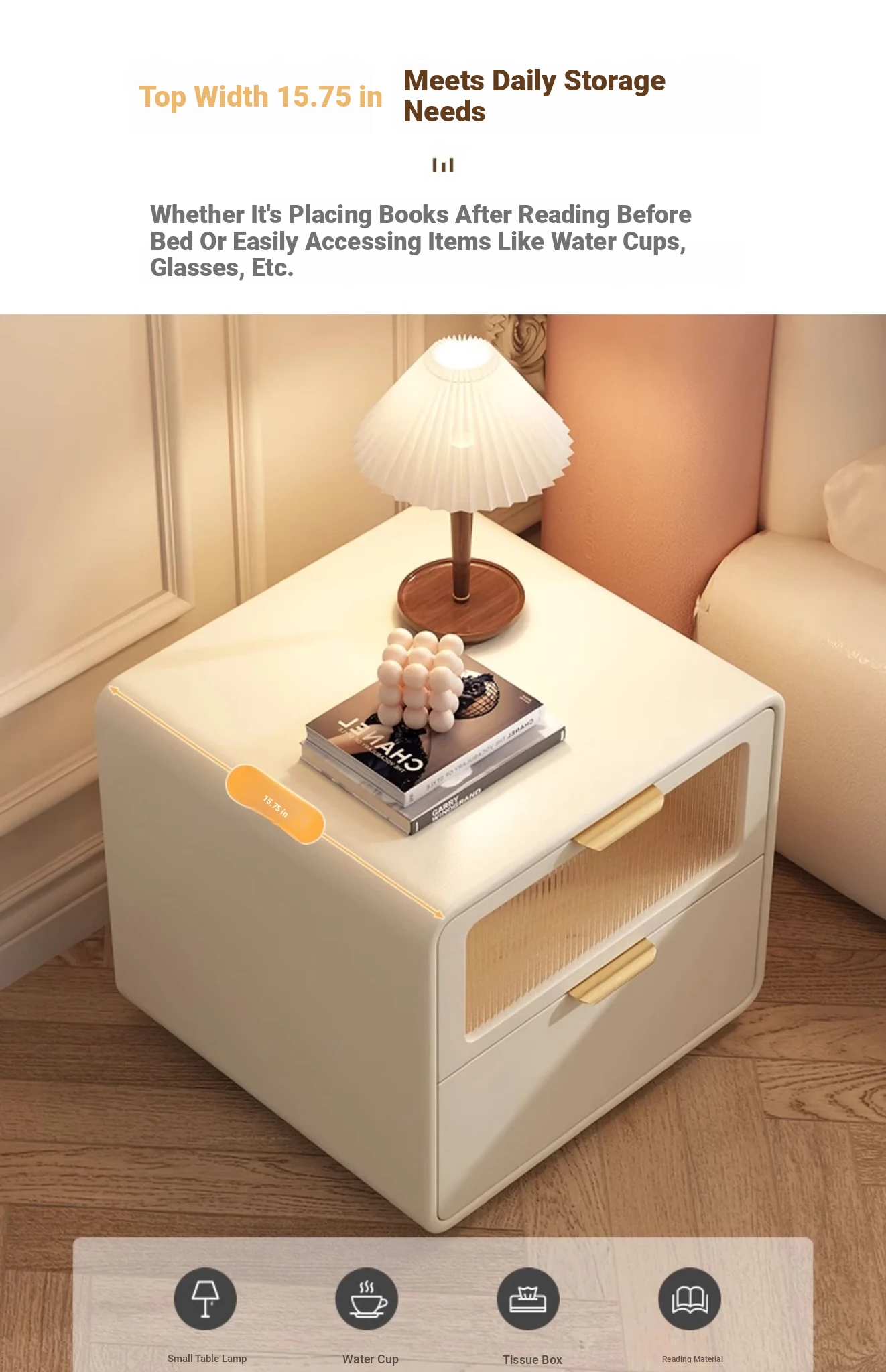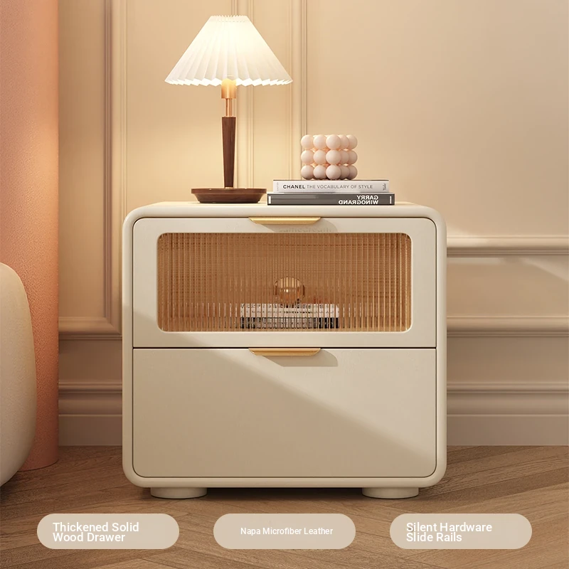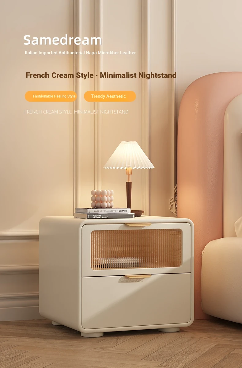 Dreamy Cream Solid Wood Nightstand - Modern Minimalist 2024 New Bedside Storage Cabinet for Bedroom, Perfect for Organizing Essentials