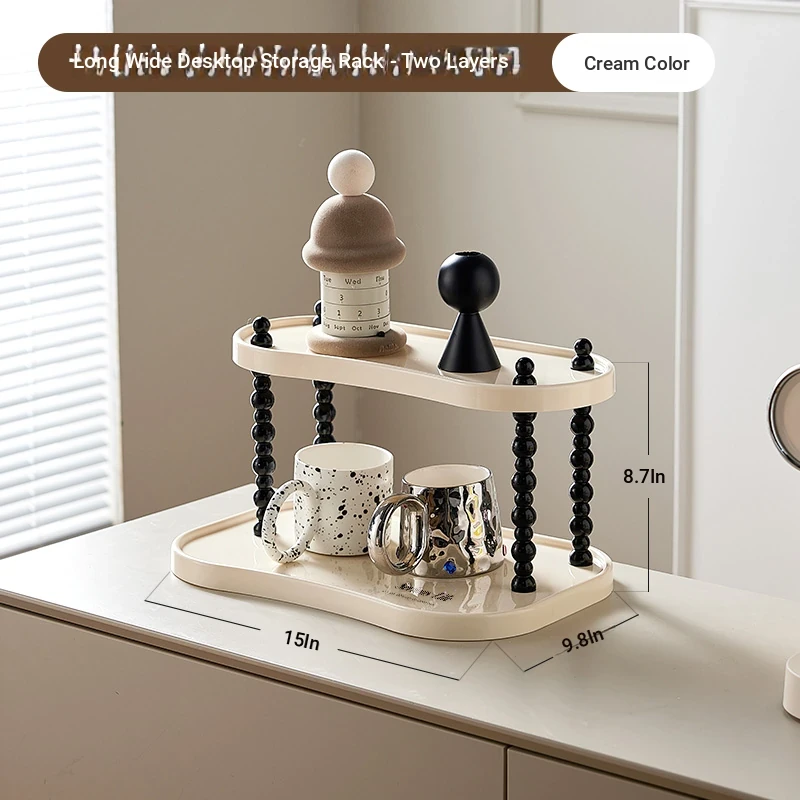 [Cream White Two-layer Widening] Rectangular Desktop Storage Rack