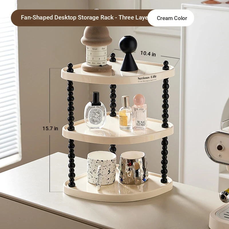 [Cream White Three Layers] Fan-shaped Desktop Storage Rack