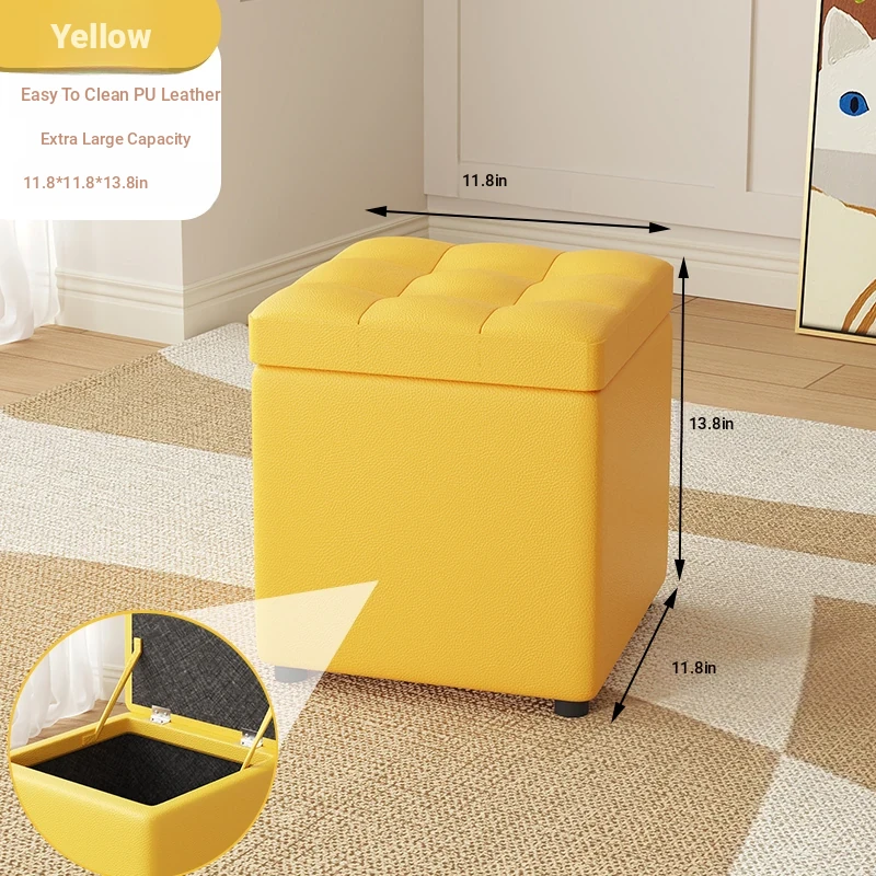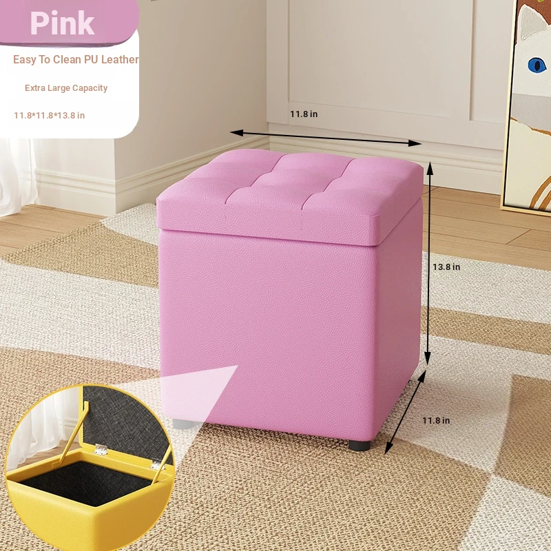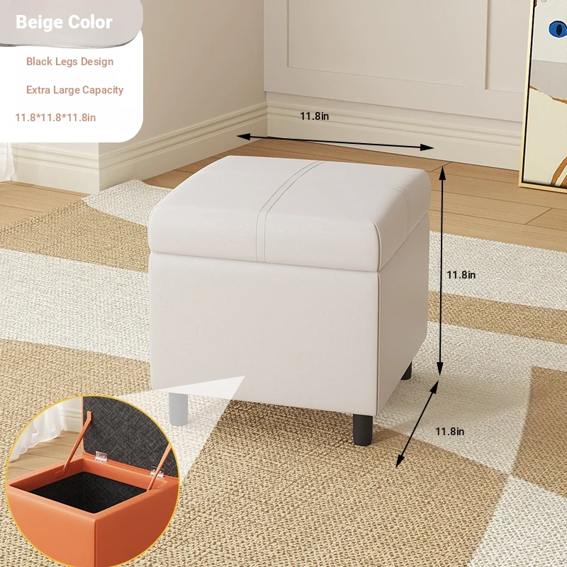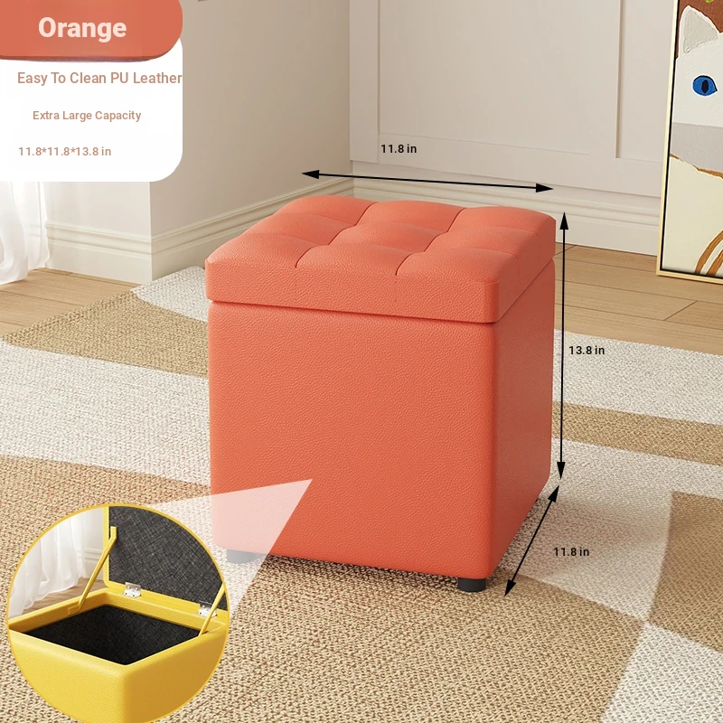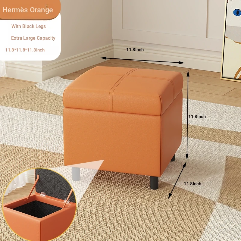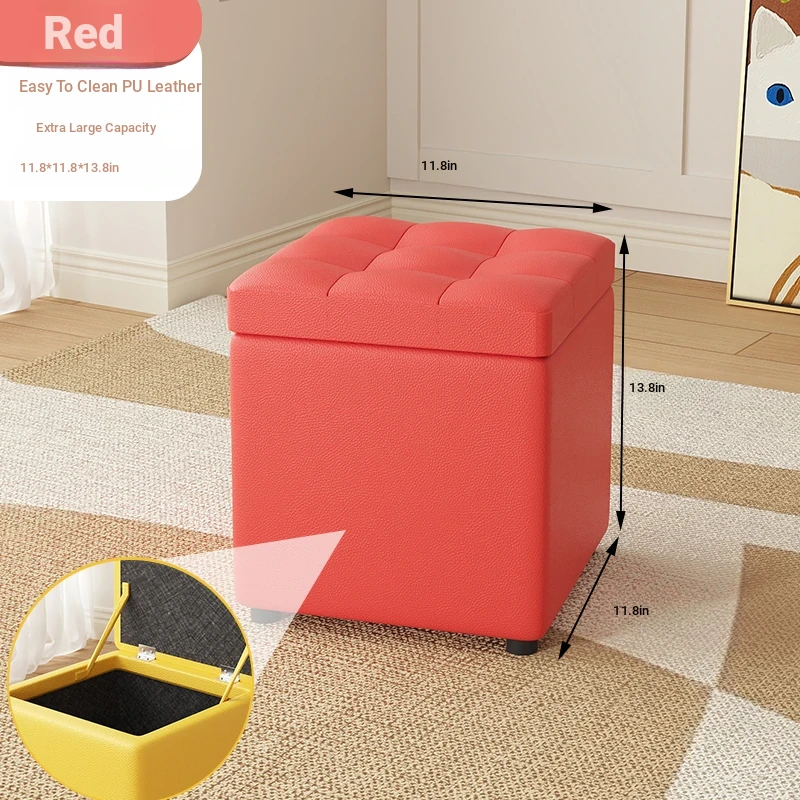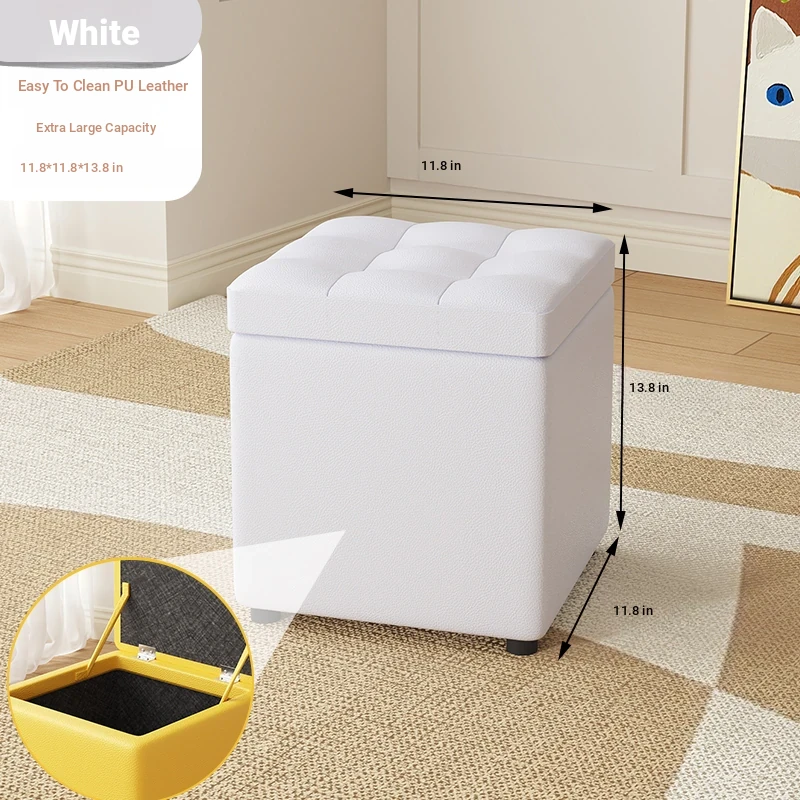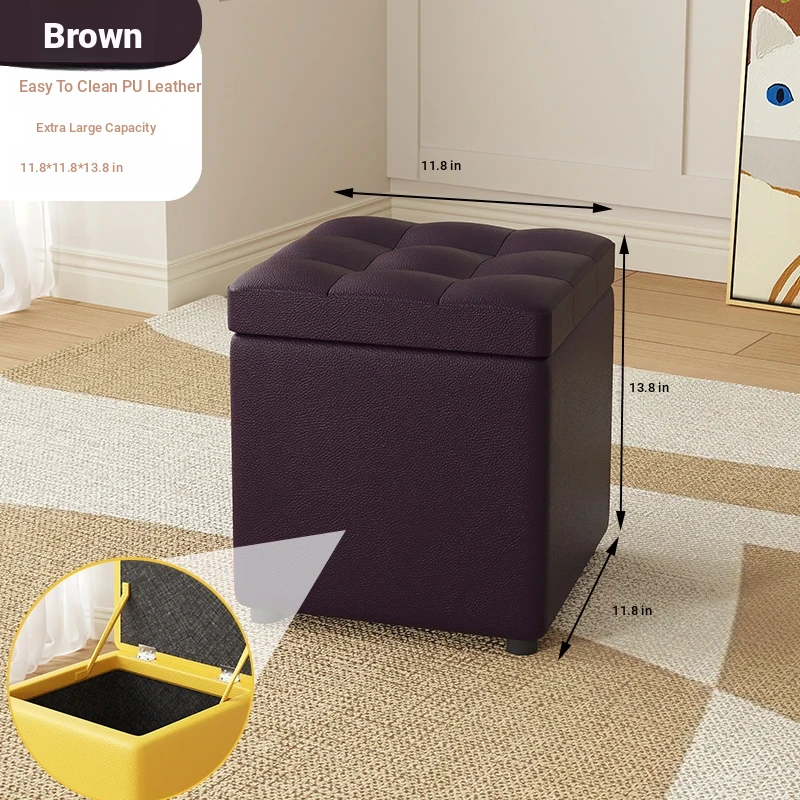 Dreamy Living Room Coffee Table Stool - Versatile Home Low Stool, Sofa Bench, Storage Shoe Changing Stool, Compact Storage Square Stool, Stylish PU Leather Seat