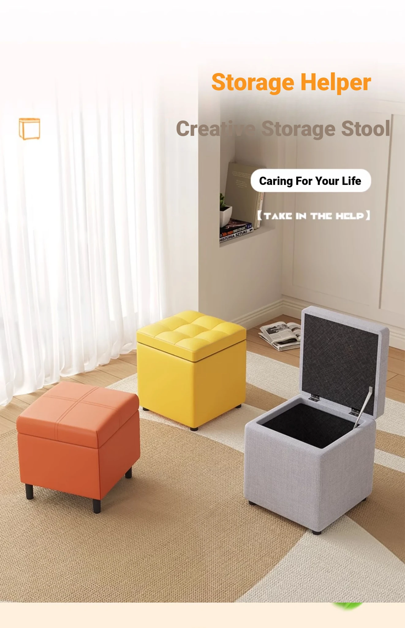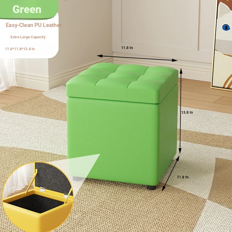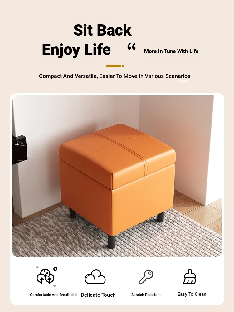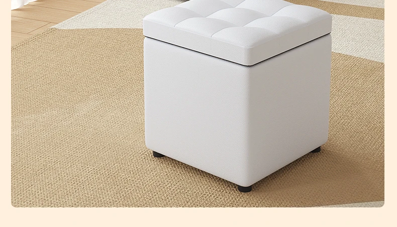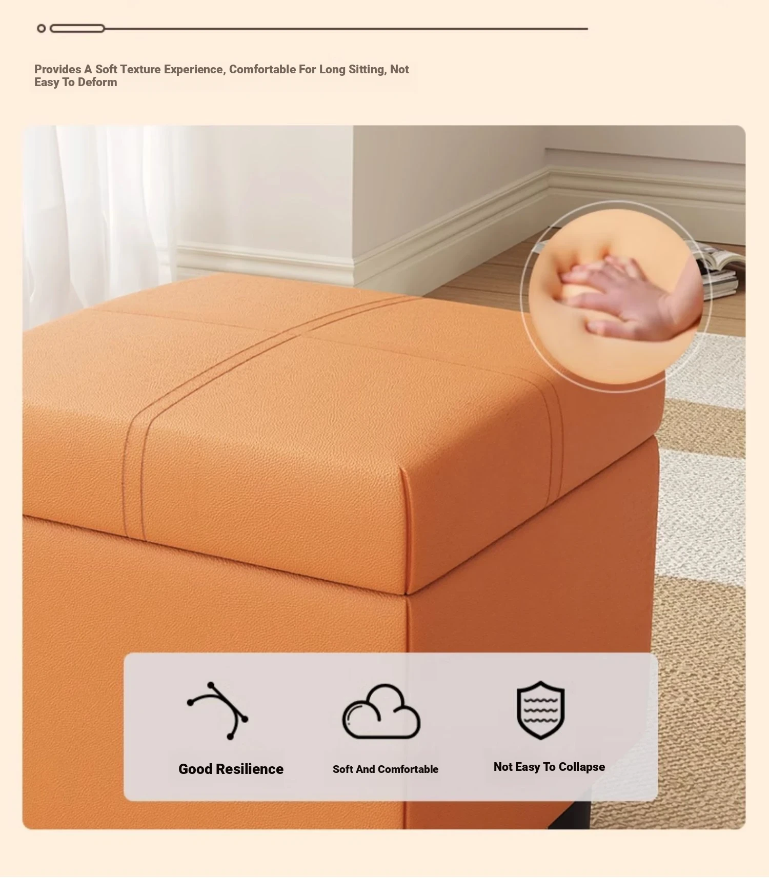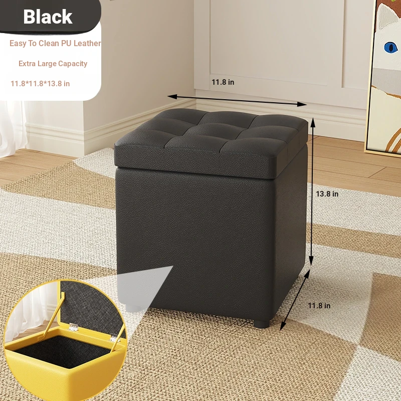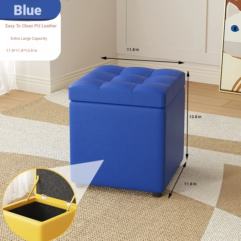 Dreamy Living Room Coffee Table Stool - Versatile Home Low Stool, Sofa Bench, Storage Shoe Changing Stool, Compact Storage Square Stool, Stylish PU Leather Seat