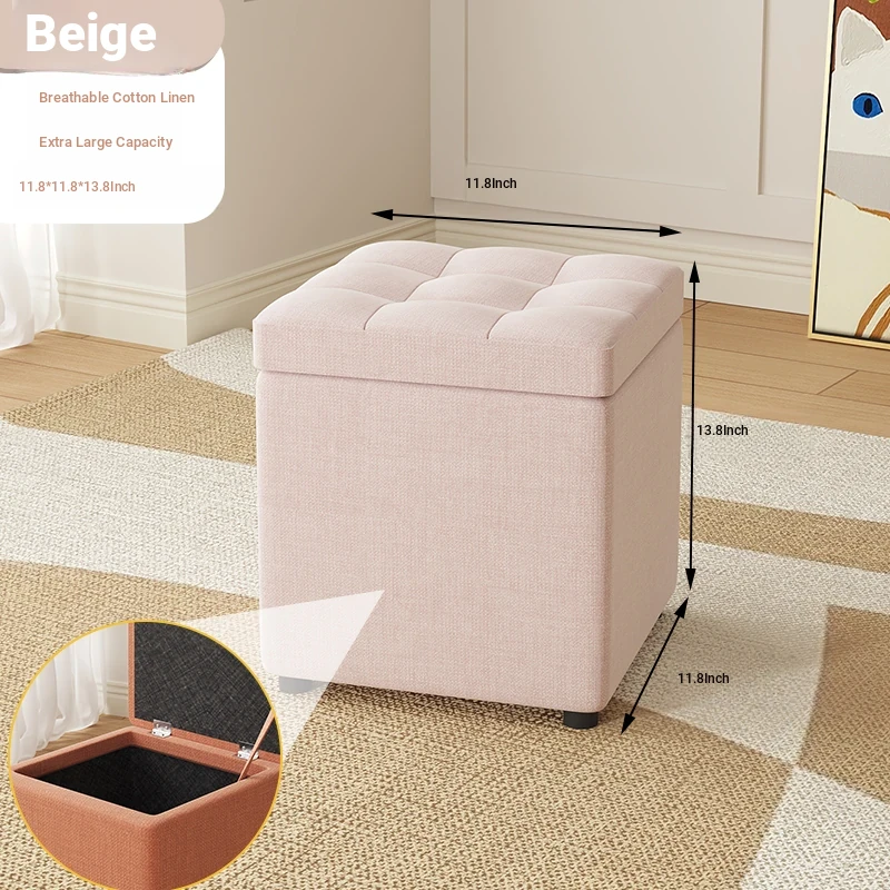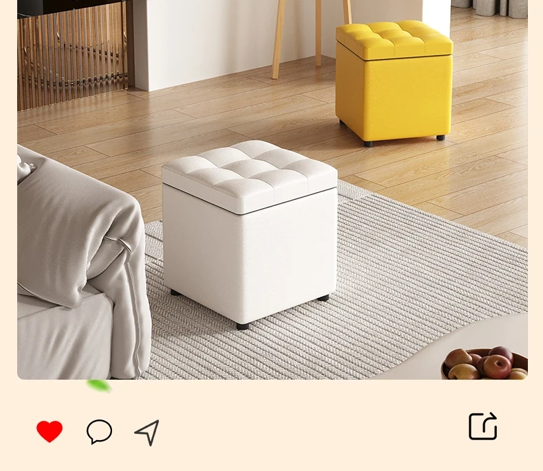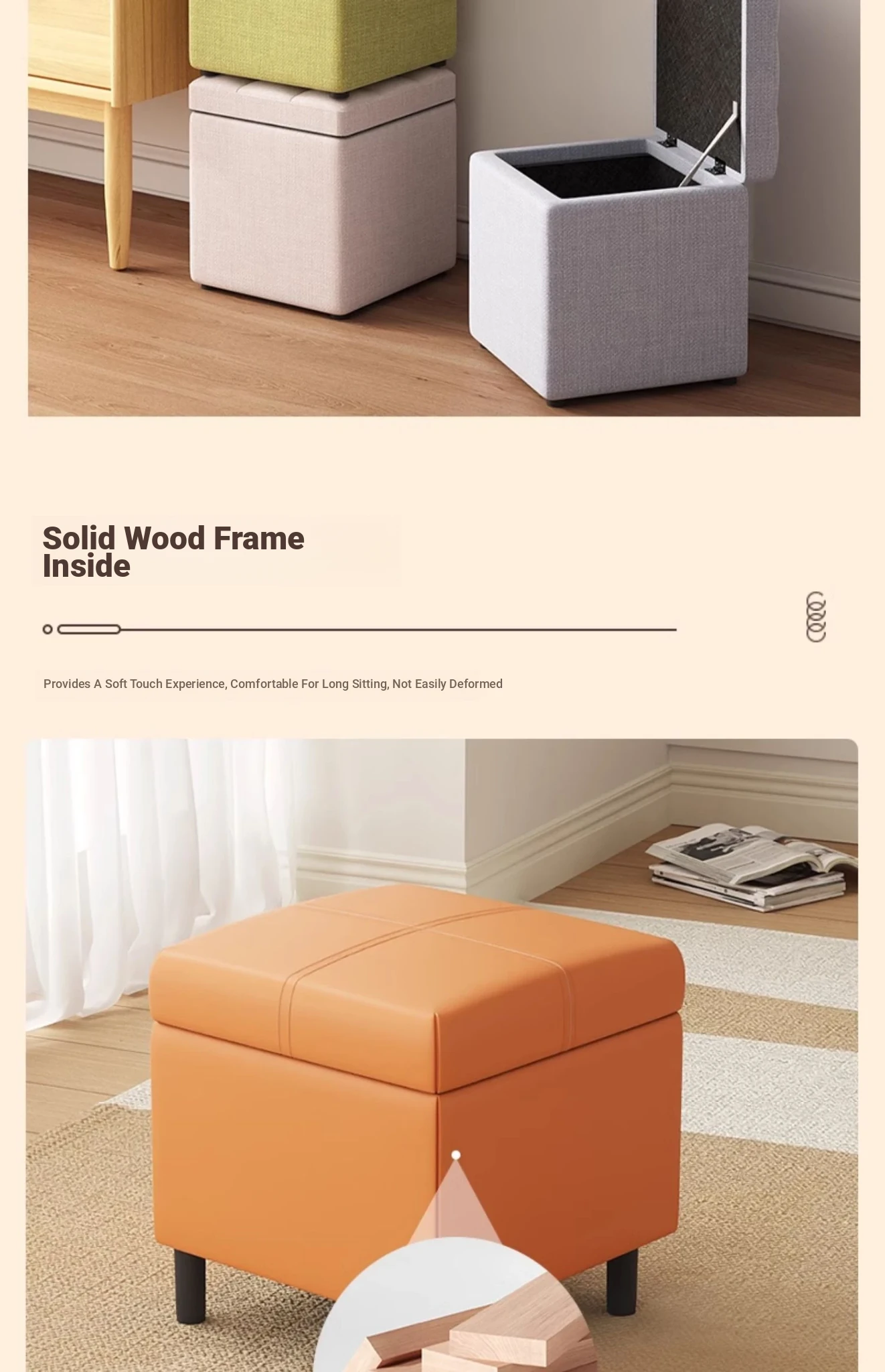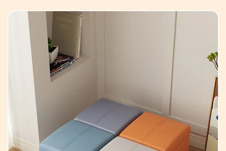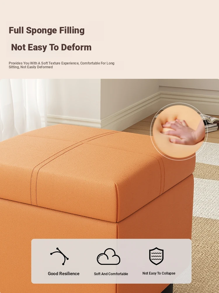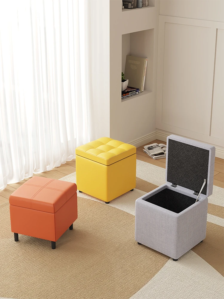 Dreamy Living Room Coffee Table Stool - Versatile Home Low Stool, Sofa Bench, Storage Shoe Changing Stool, Compact Storage Square Stool, Stylish PU Leather Seat