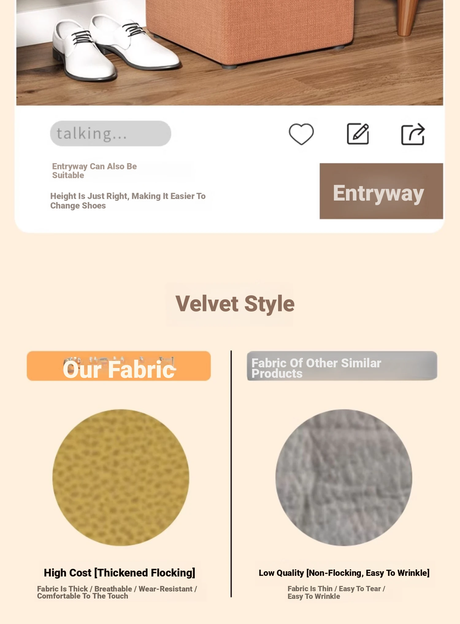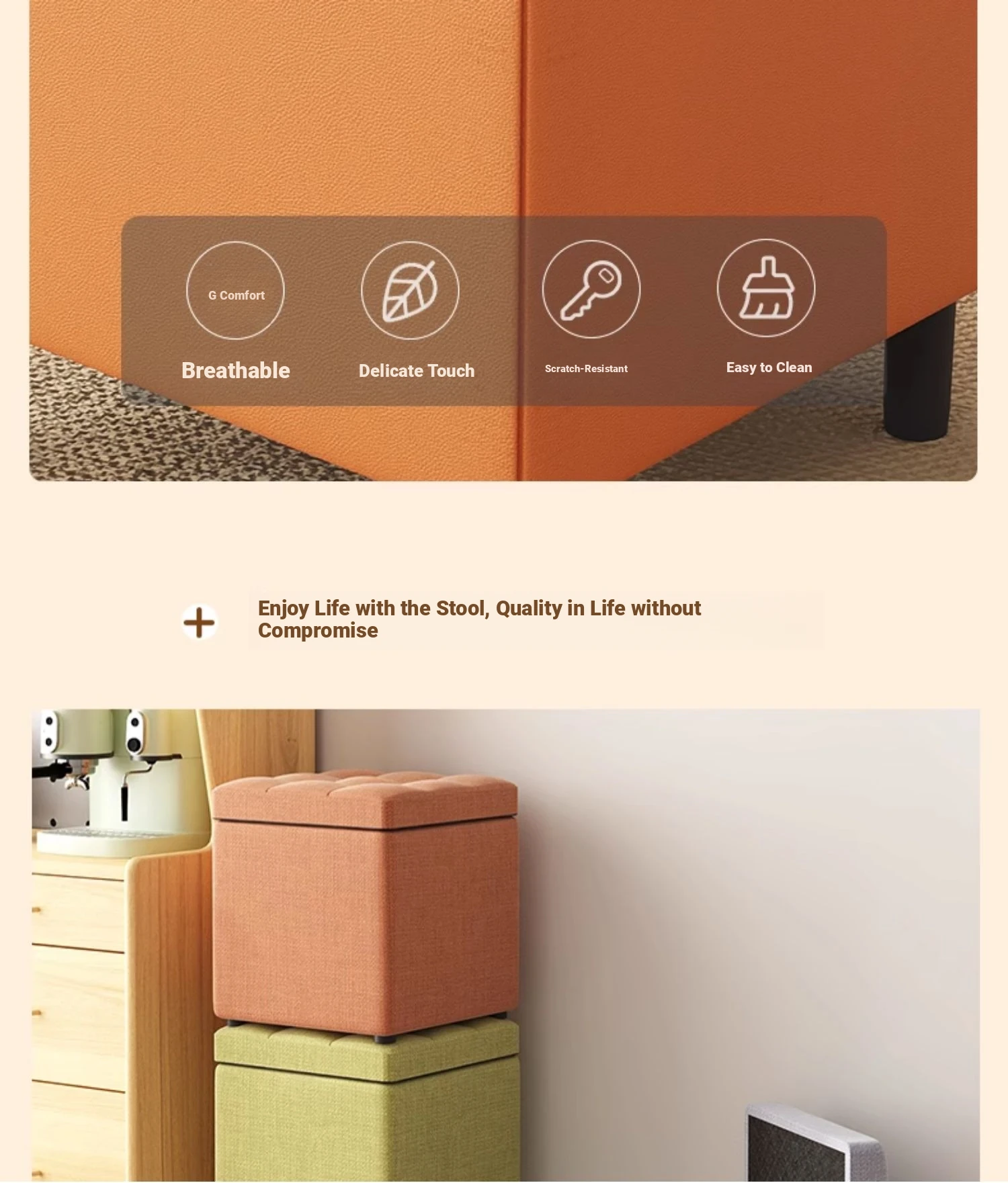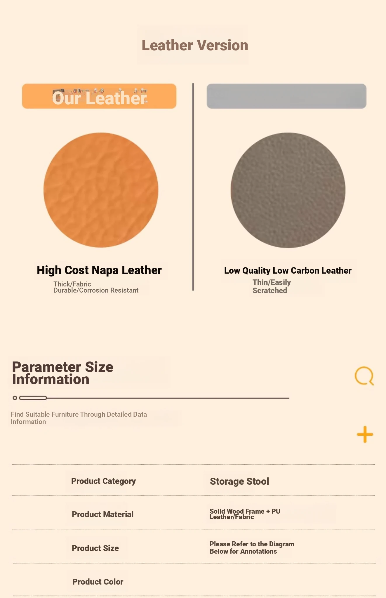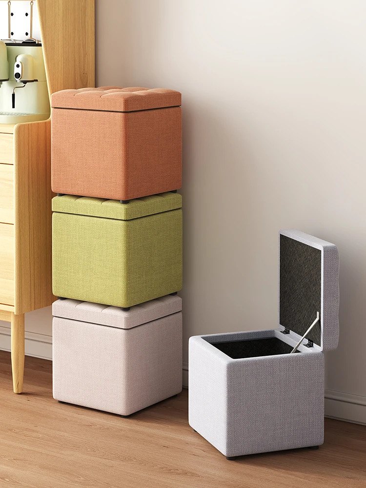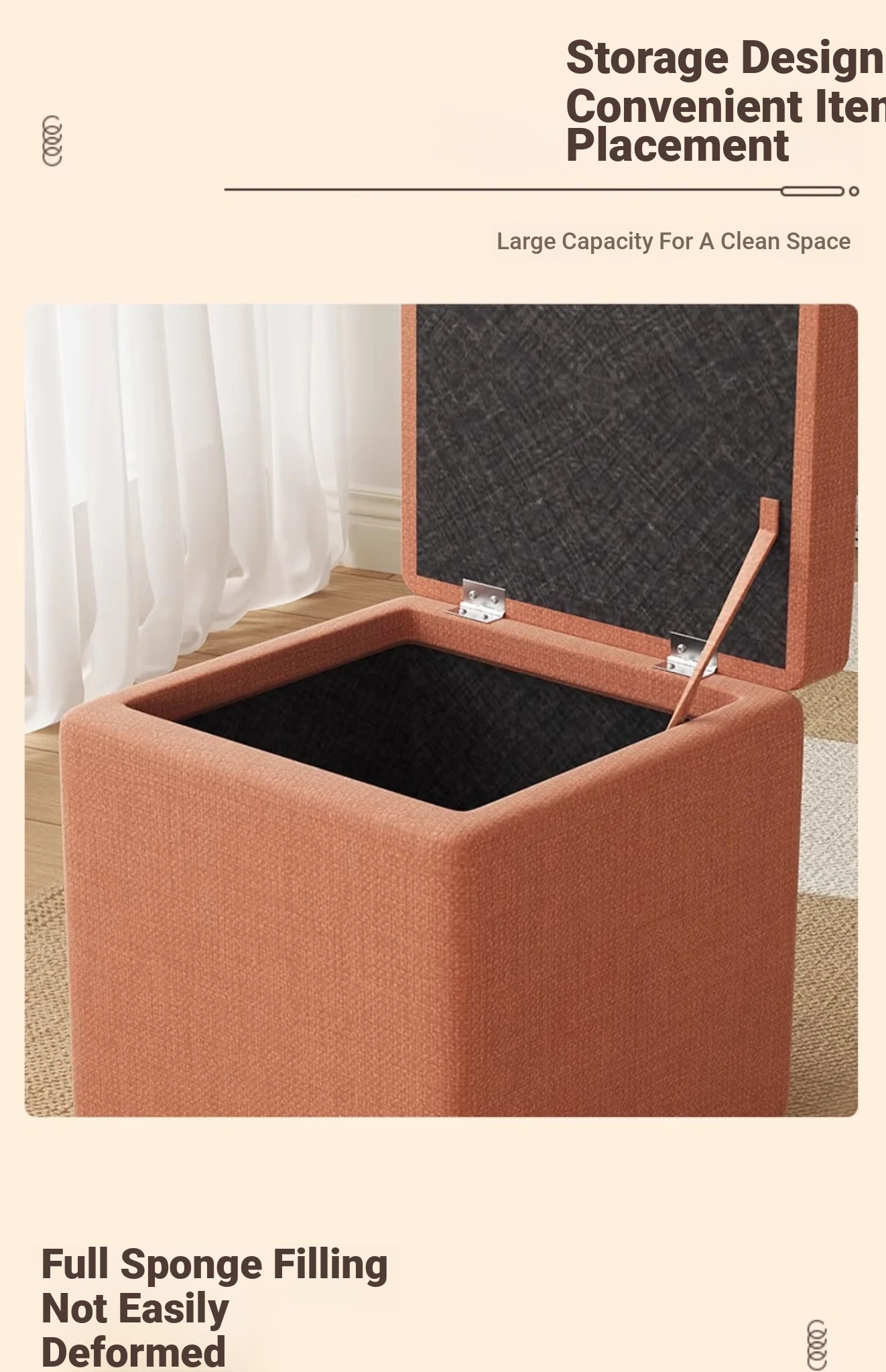 Dreamy Living Room Coffee Table Stool - Versatile Home Low Stool, Sofa Bench, Storage Shoe Changing Stool, Compact Storage Square Stool, Stylish PU Leather Seat