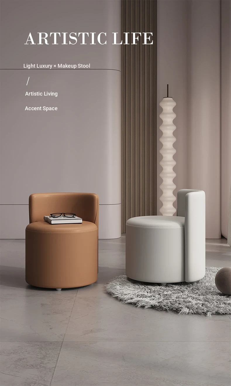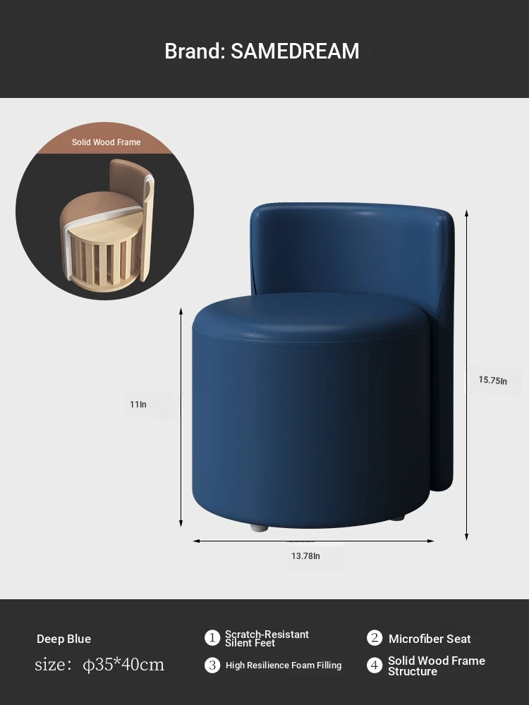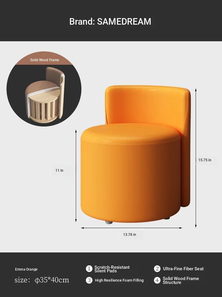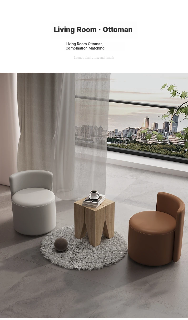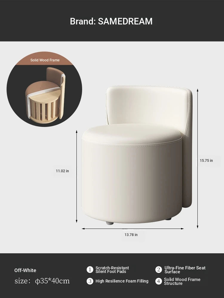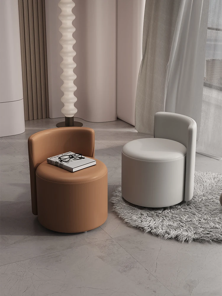 Dreamy Luxury Small Stool for Living Room - Soft-Padded Low Ottoman, Round Sofa Bench, Tea Table Backrest Chair, Entryway Shoe Changing Seat