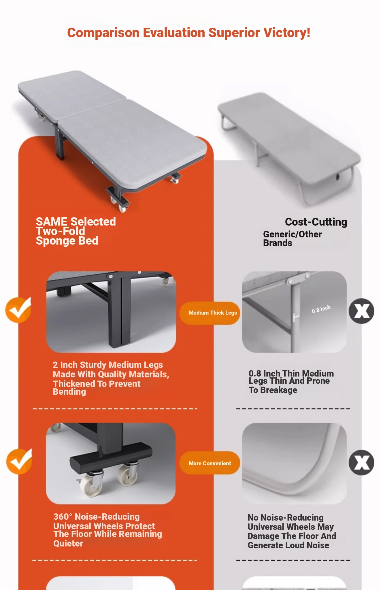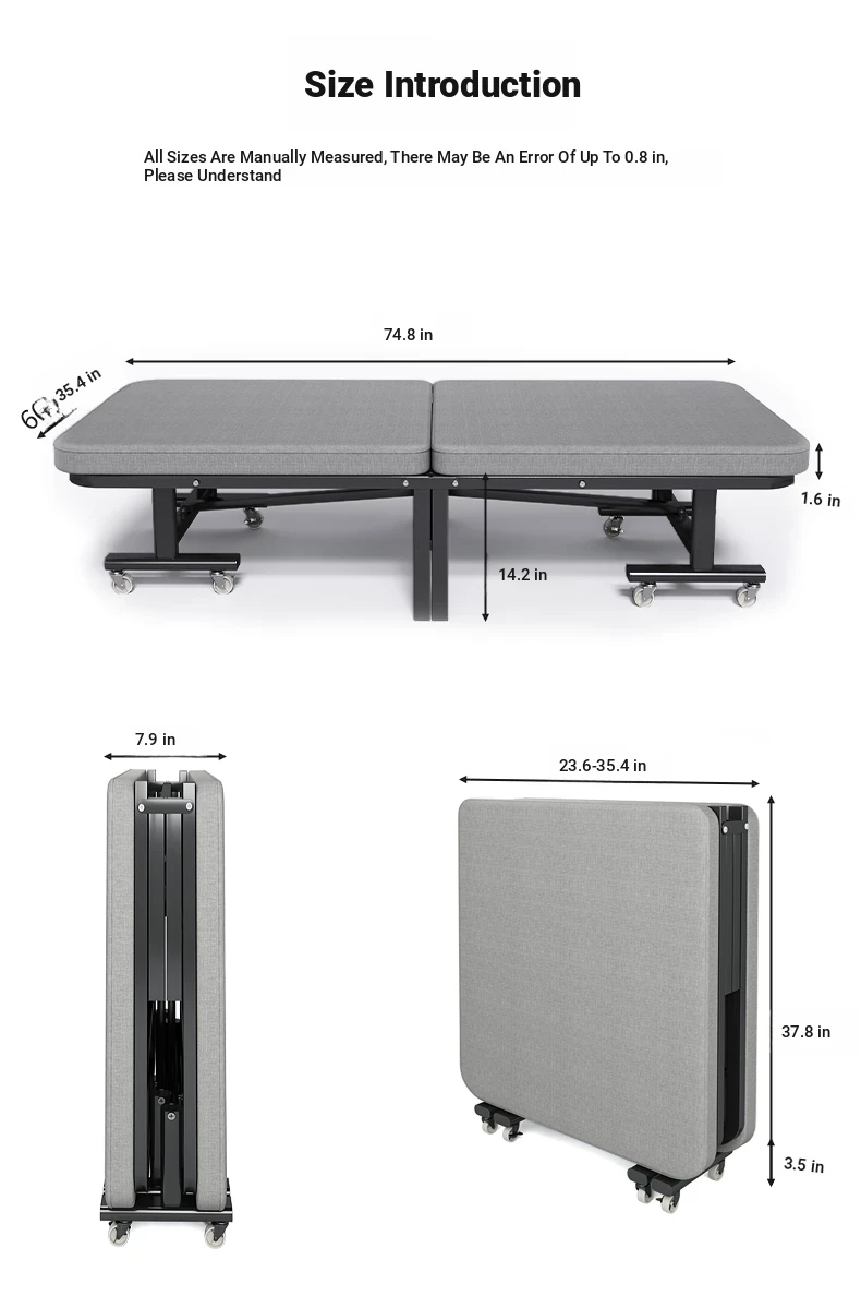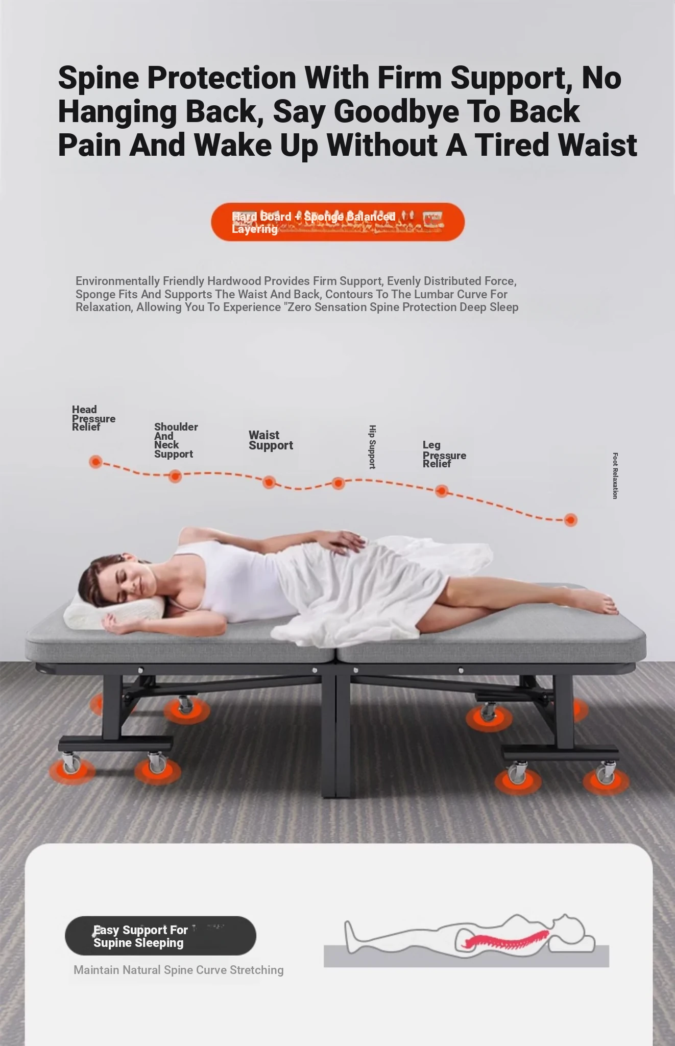 Dreamy Office Folding Bed - Single Portable Nap Solution for Home and Office, Ideal for Breaks and Caregiving, Sturdy Design for Ultimate Comfort