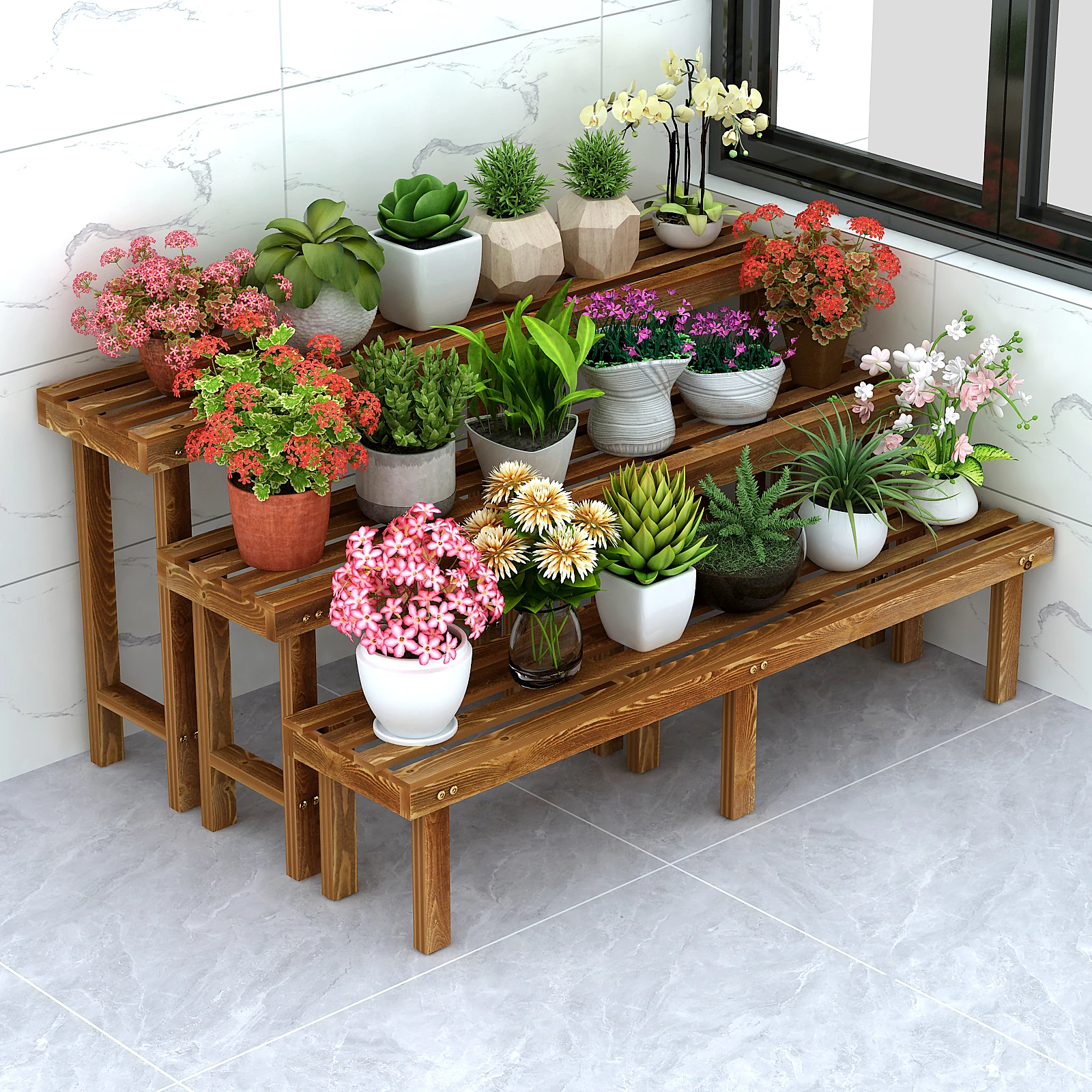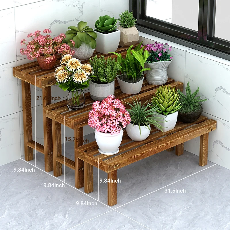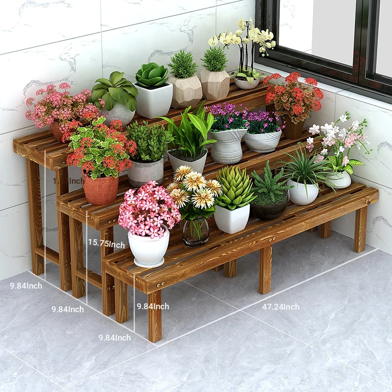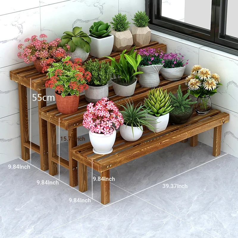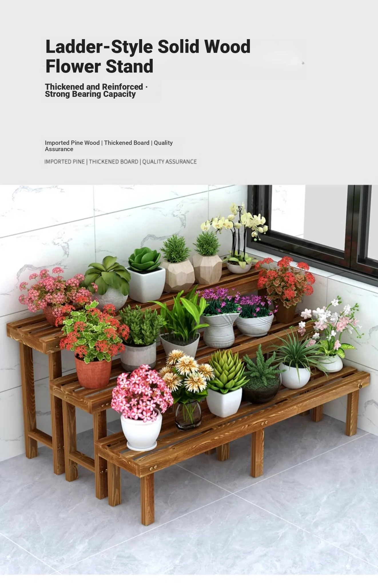 Dreamy Three-Tier Wooden Plant Stand - Stylish Ladder-Shape Shelf for Balcony & Living Room - Perfect for Displaying Flowers and Plants - Sturdy Floor-Standing Design