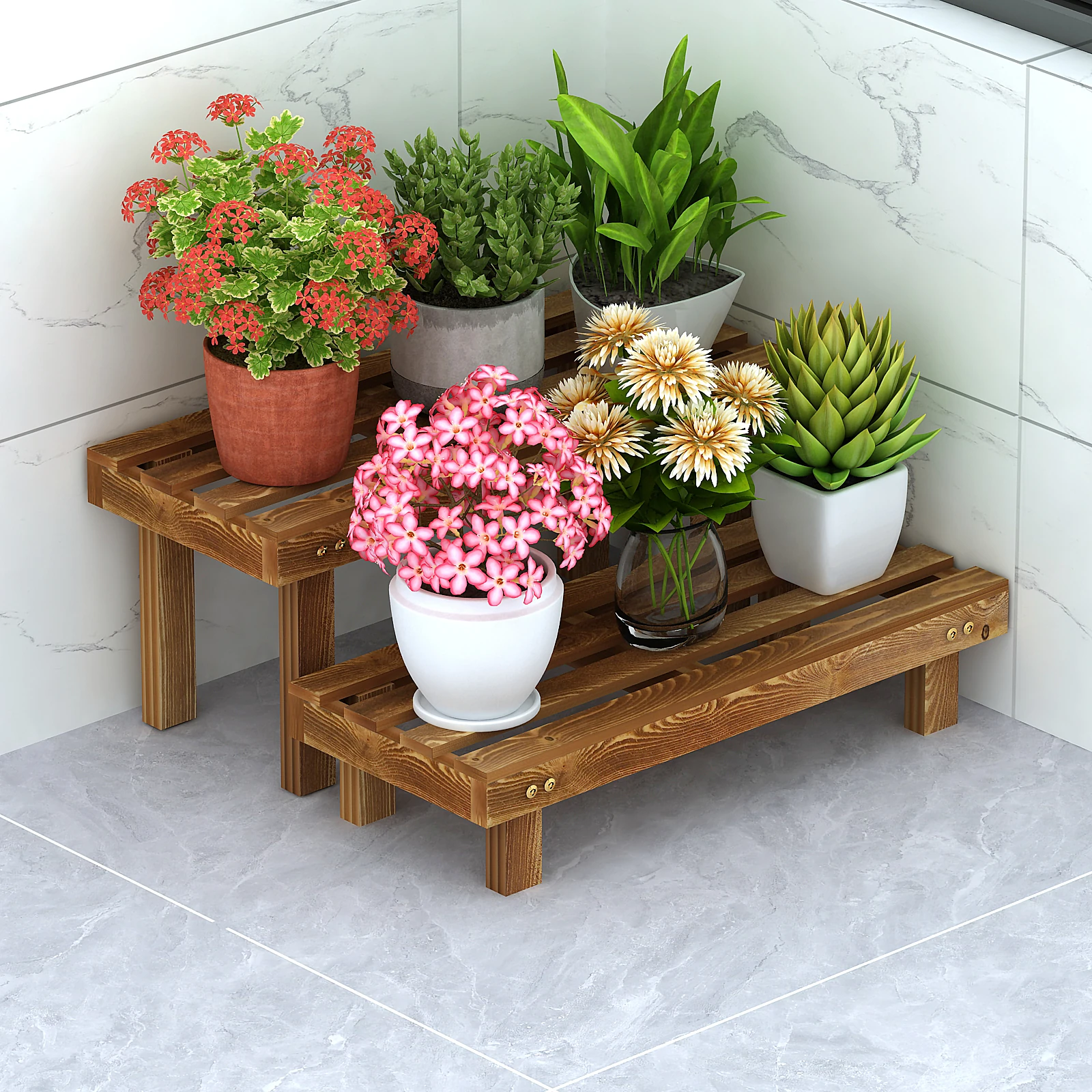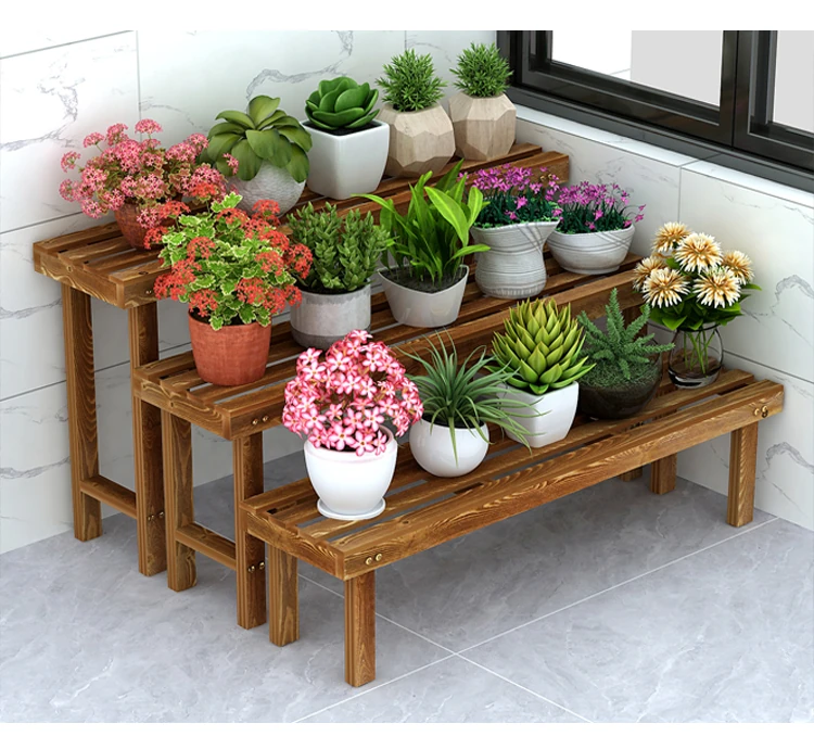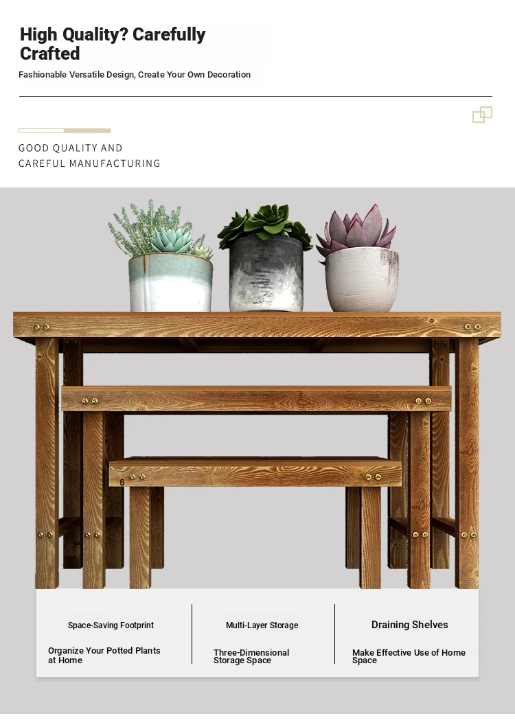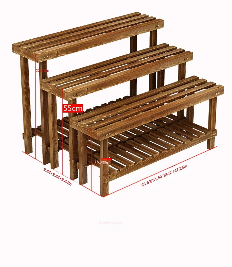 Dreamy Three-Tier Wooden Plant Stand - Stylish Ladder-Shape Shelf for Balcony & Living Room - Perfect for Displaying Flowers and Plants - Sturdy Floor-Standing Design