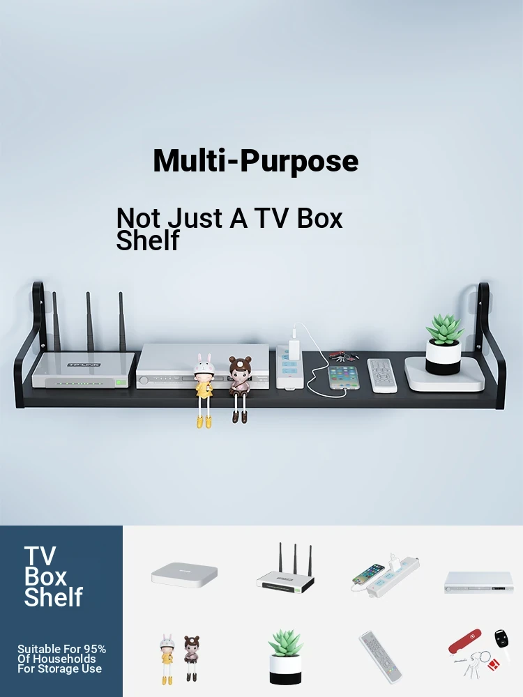 Dreamy WiFi Wall-Mounted Shelf - No Drill Router and Set-Top Box Holder, Stylish Iron Storage Rack for Organized Living Space