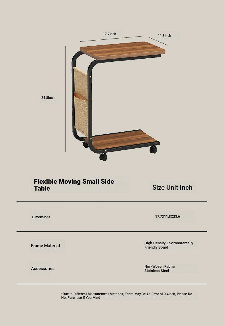 Minimalist Mobile Side Table - Compact Tea Table, Square Computer Desk, Bedside Table, Sofa Side Table, Perfect for Small Spaces