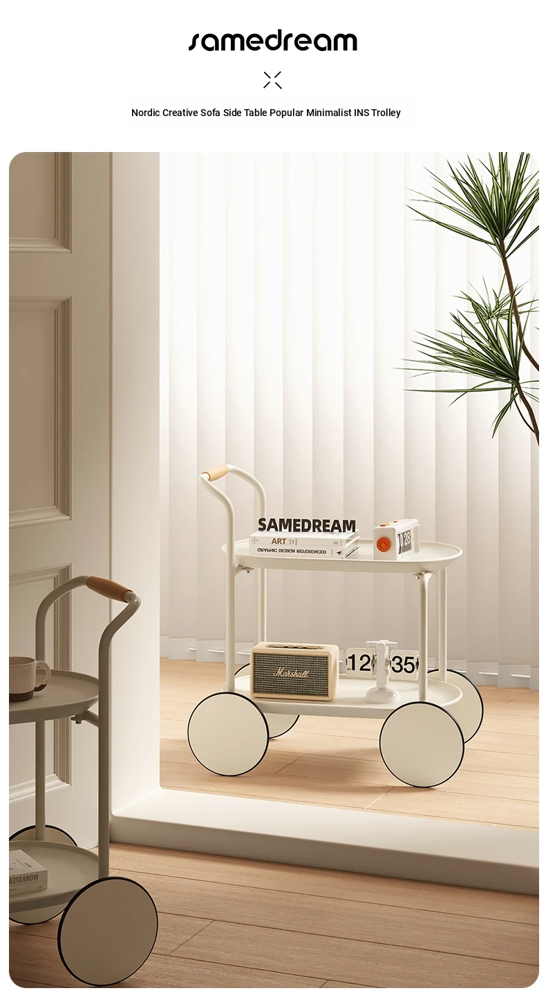 Modern Minimalist Movable Side Table with Sofa - Creative Small Coffee Table for Balcony, Trendy Cart Storage Rack