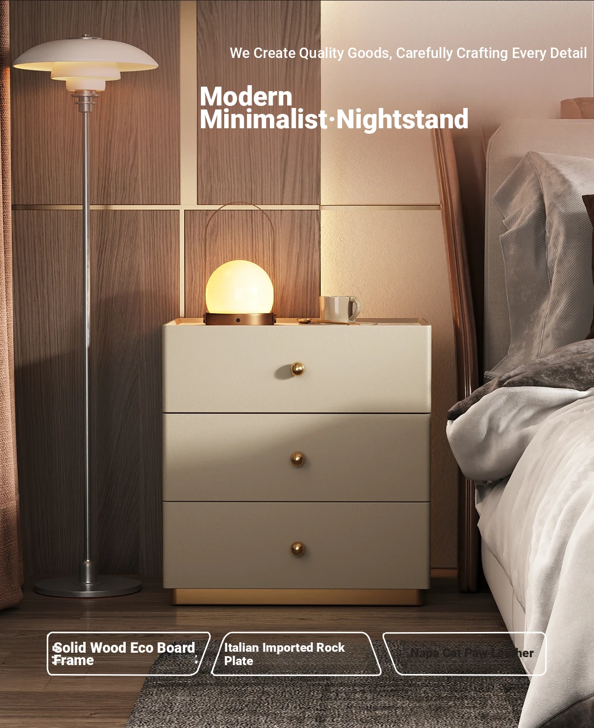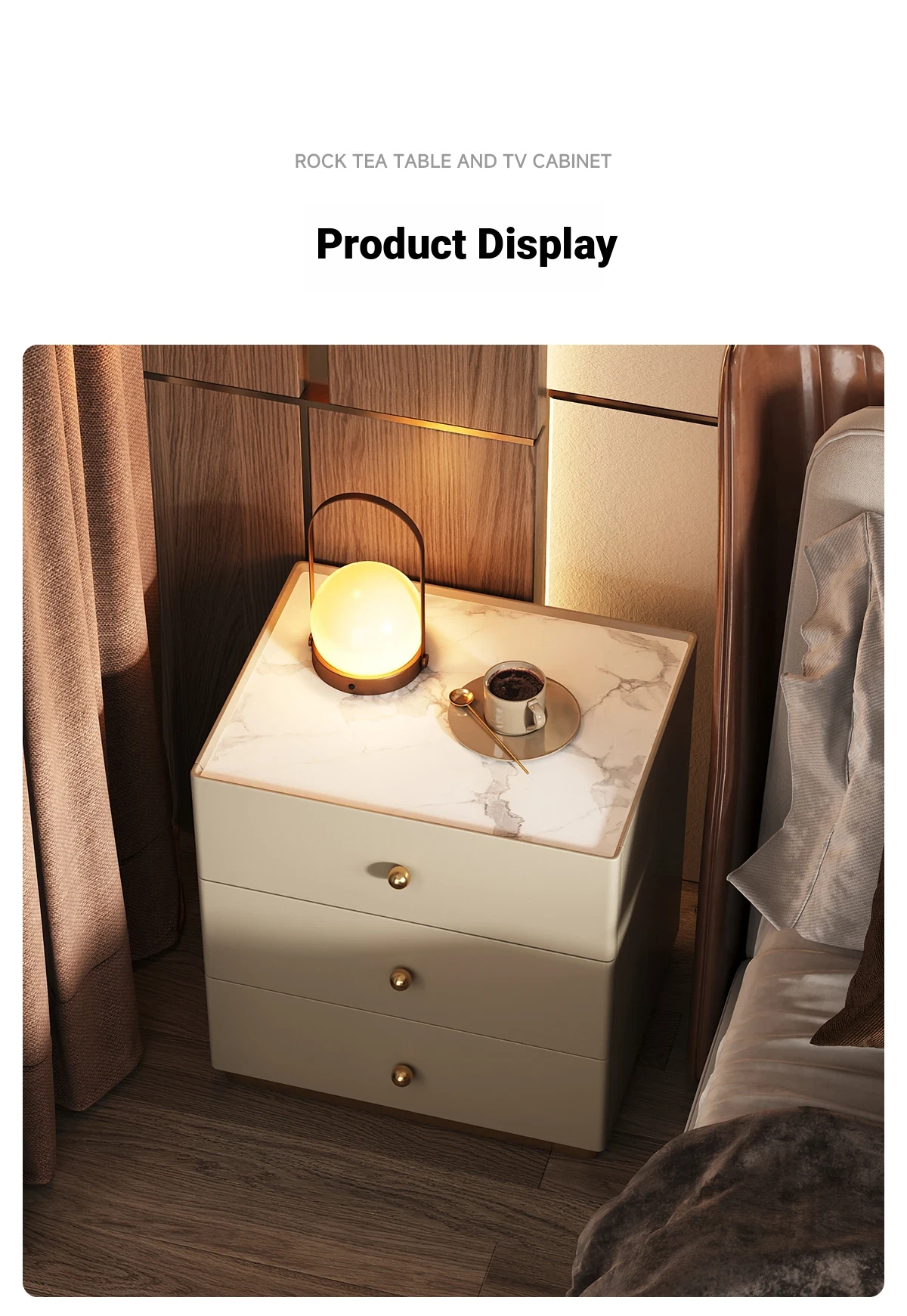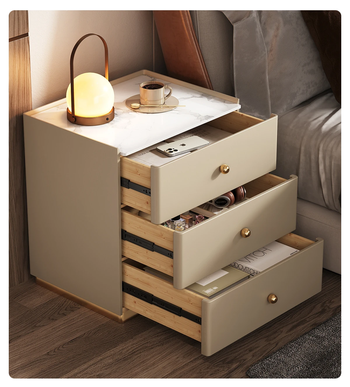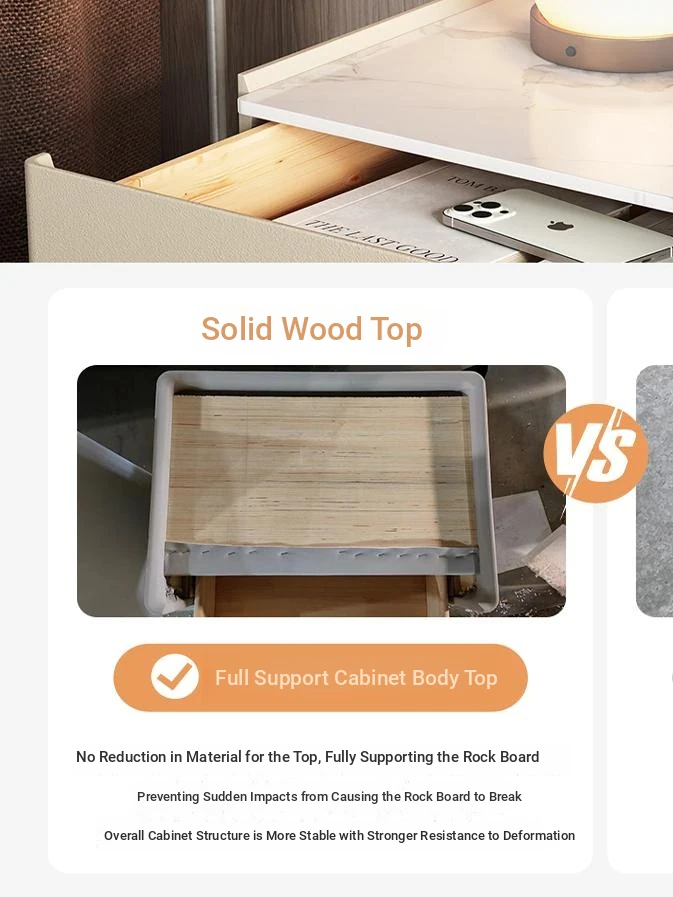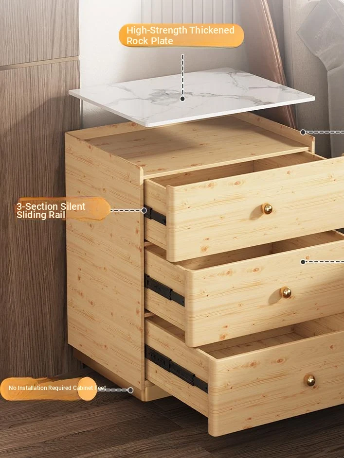 Modern Minimalist Solid Wood Nightstand - New Elegant Rock Panel Bedroom Cabinet for Luxurious Bedside Storage