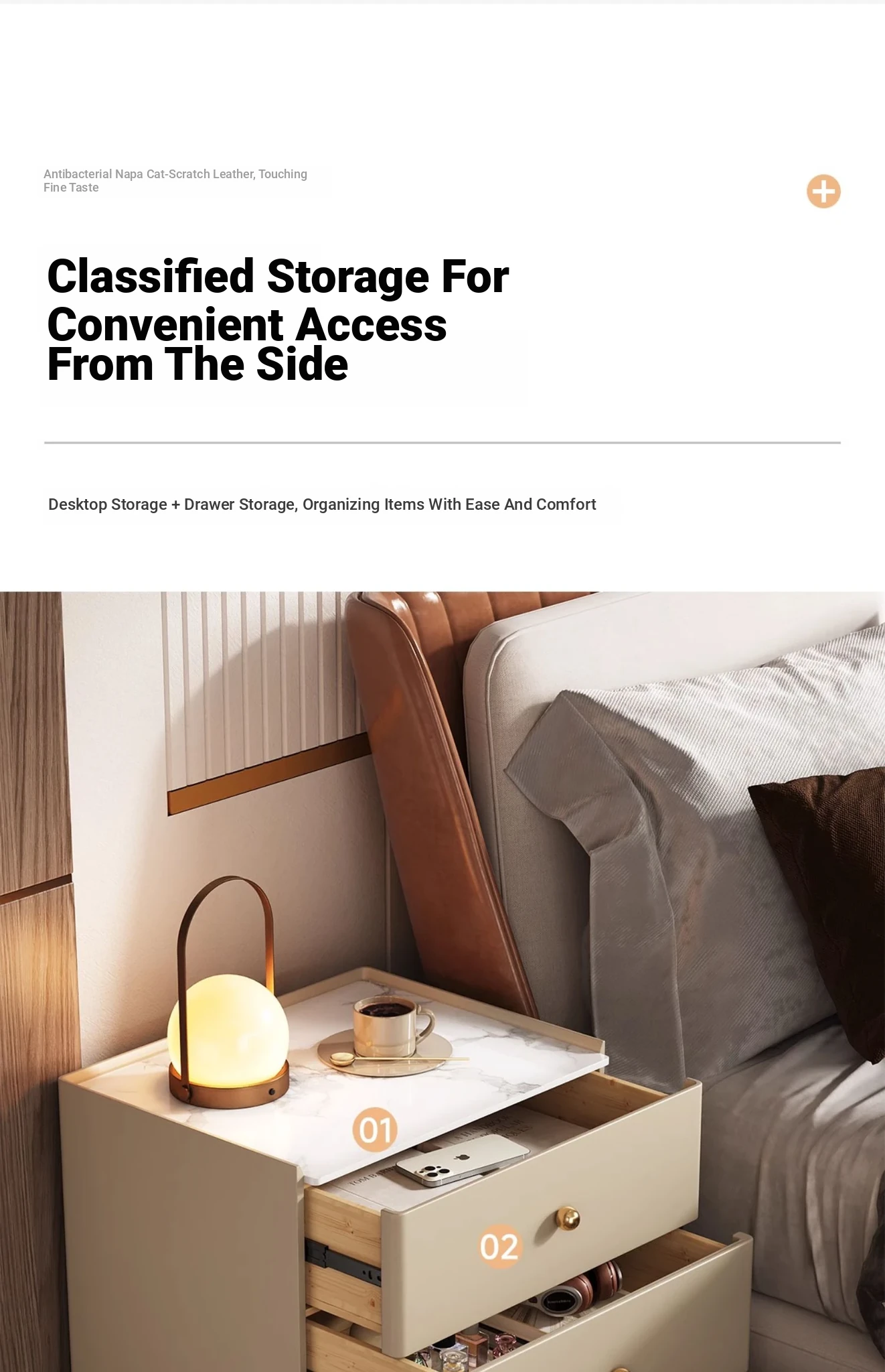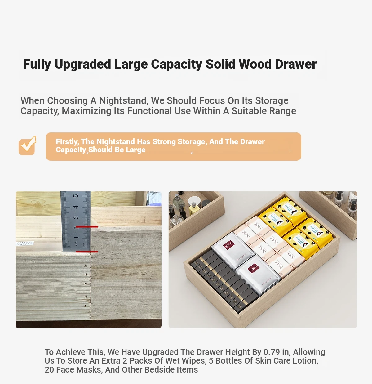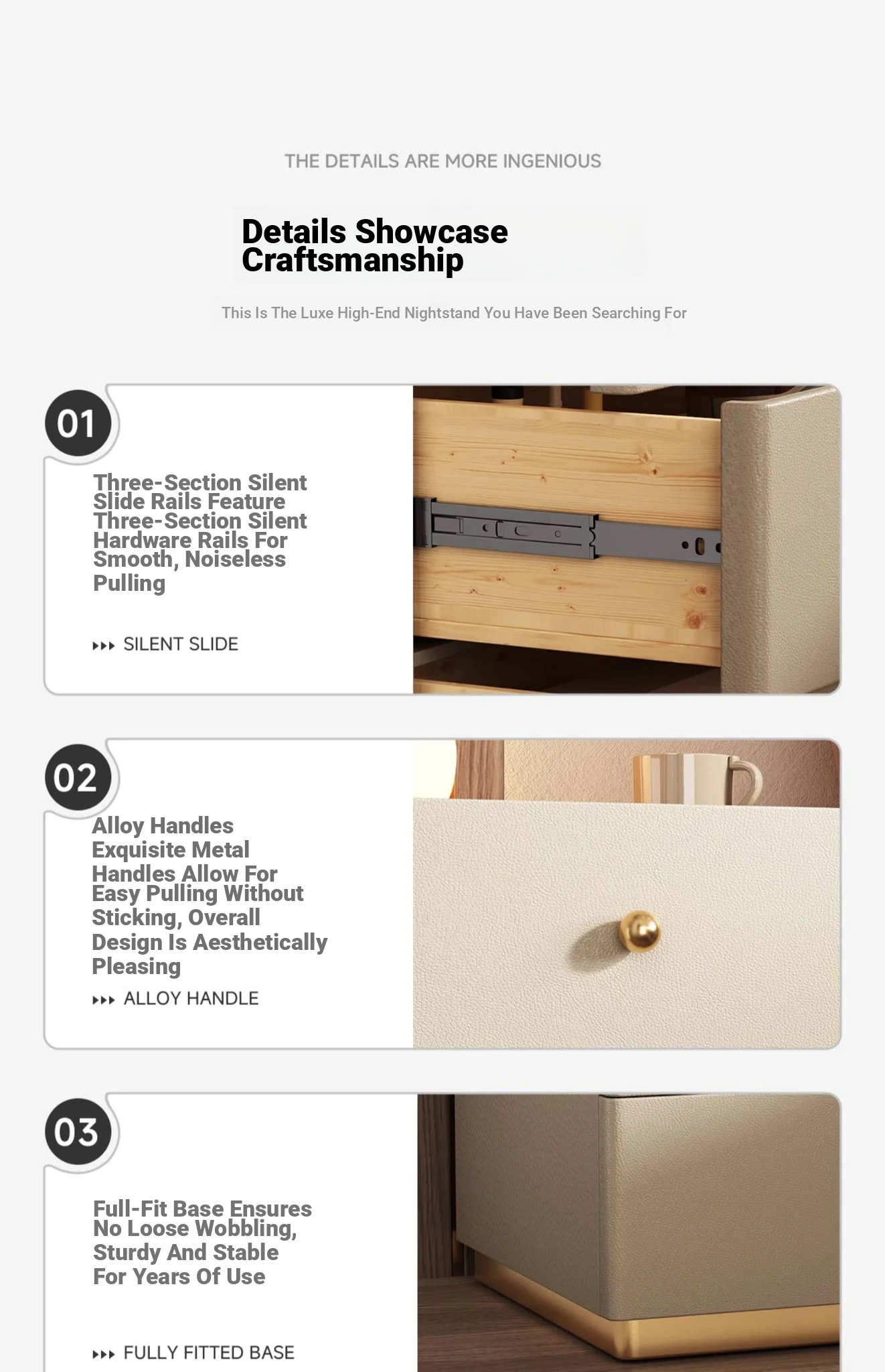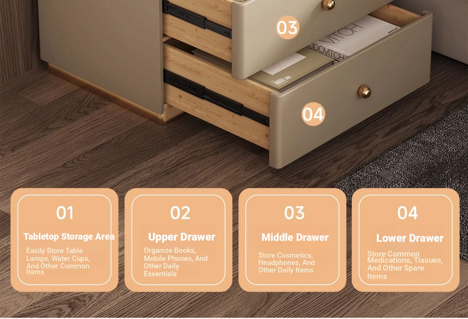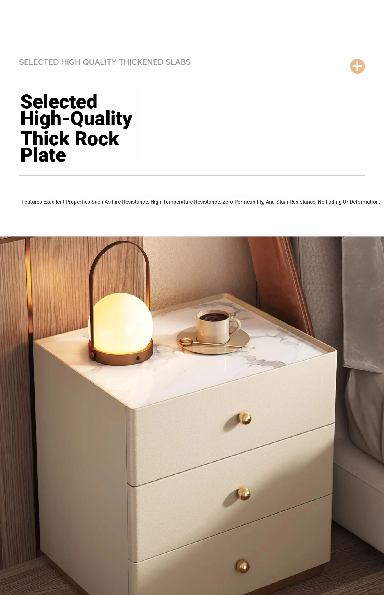 Modern Minimalist Solid Wood Nightstand - New Elegant Rock Panel Bedroom Cabinet for Luxurious Bedside Storage