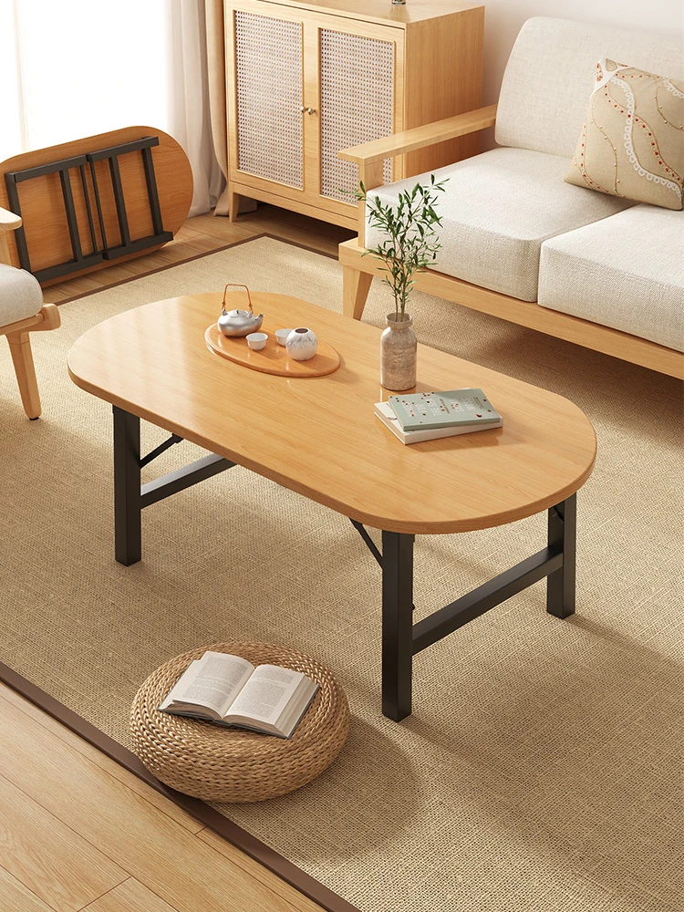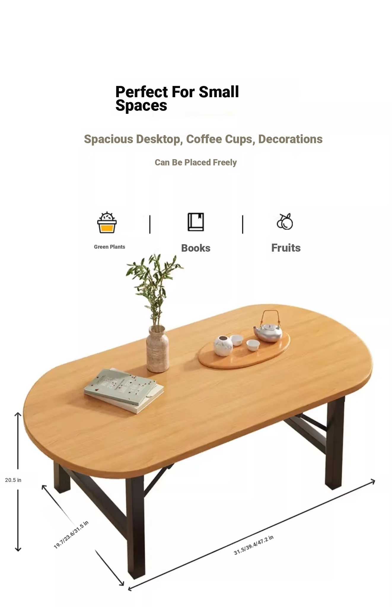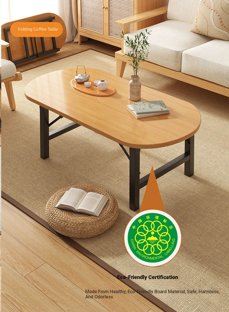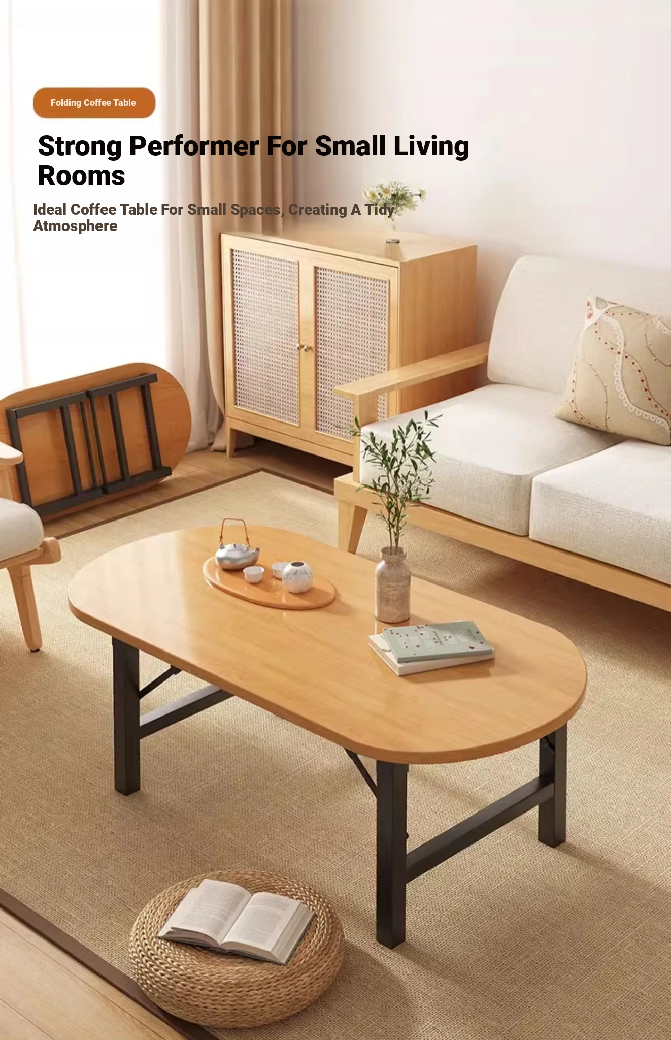 Modern Oval Folding Coffee Table – Space-Saving Design for Small Living Rooms, Versatile Use as Dining or Display Table, Ideal for Home & Pop-Up Stalls
