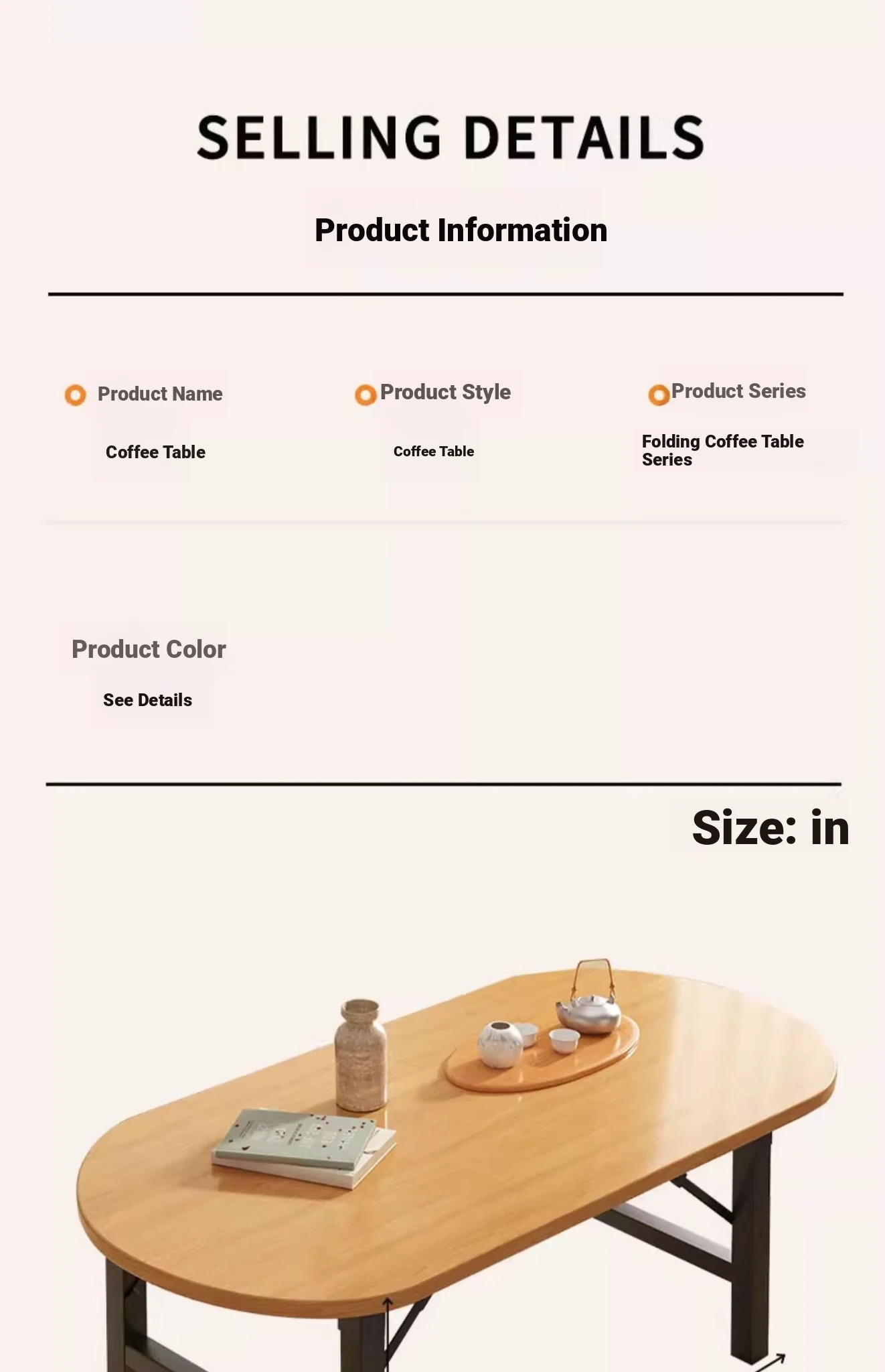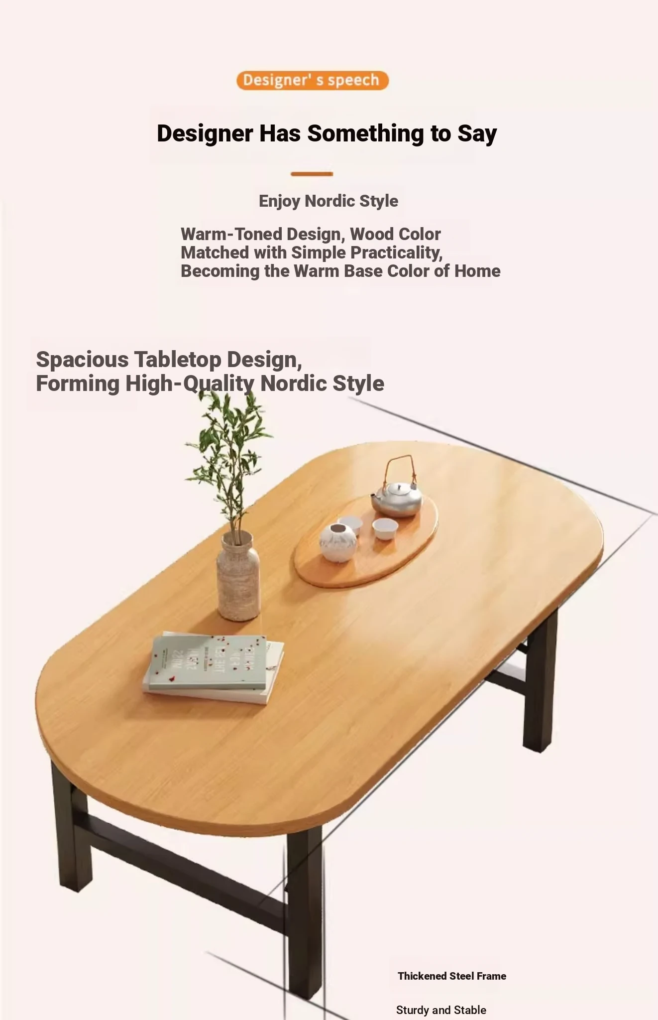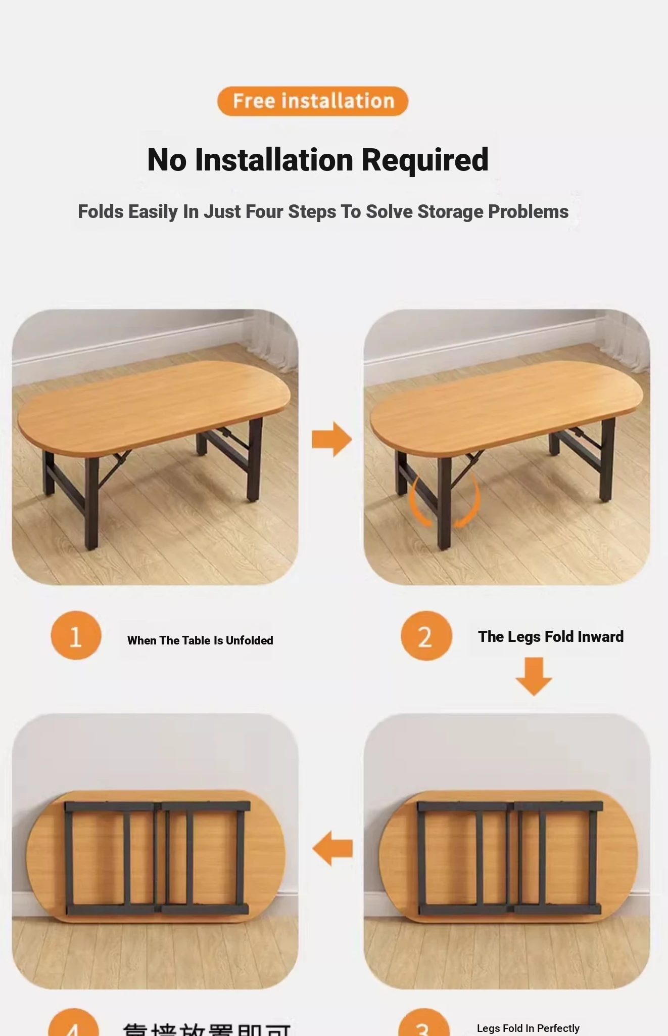 Modern Oval Folding Coffee Table – Space-Saving Design for Small Living Rooms, Versatile Use as Dining or Display Table, Ideal for Home & Pop-Up Stalls