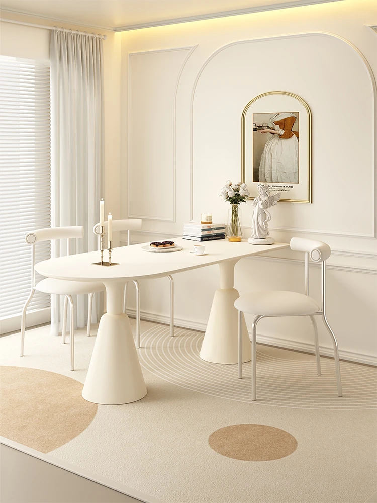 White stone pattern [100*50*52] Oval rectangular table free installation