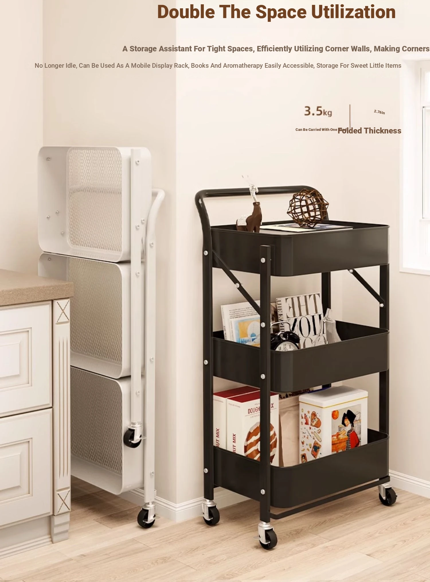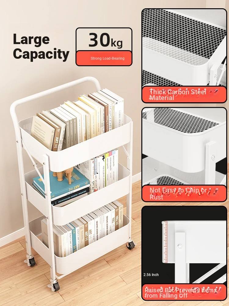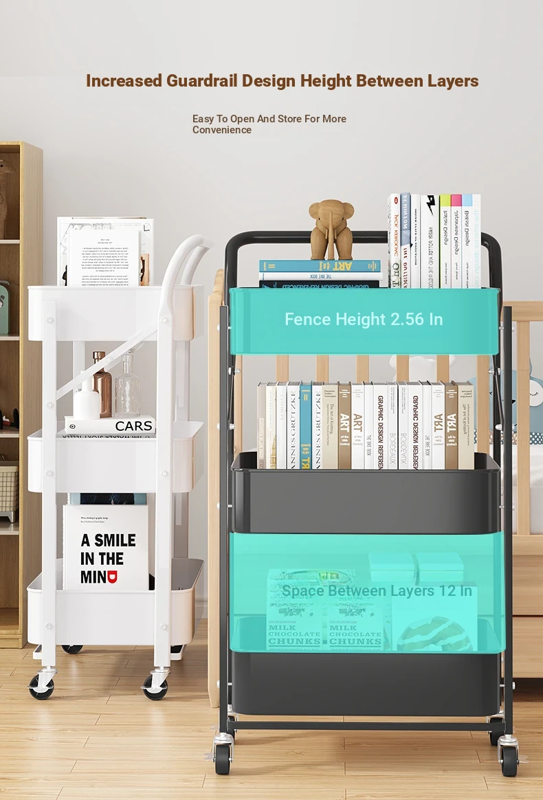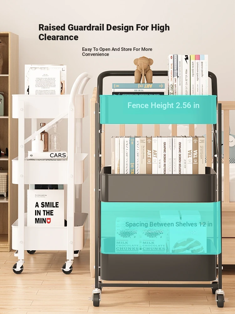 Multi-Layer Rolling Bookshelf & Storage Cart - Versatile Floor Bookcase with Wheels for Snacks & Miscellaneous Items, Perfect for Reading Nook or Desk Side