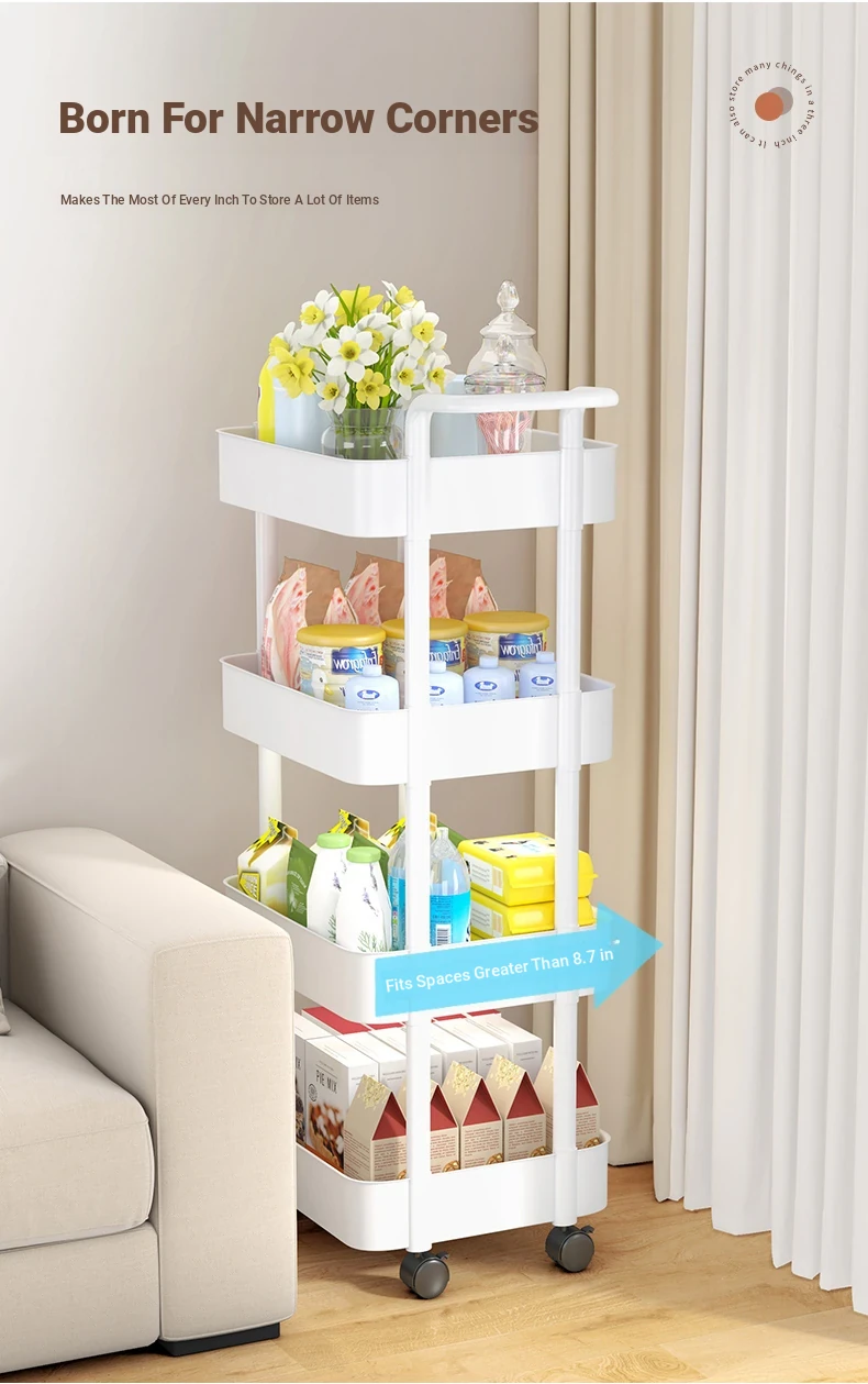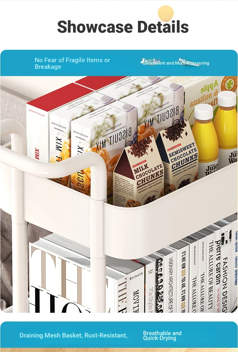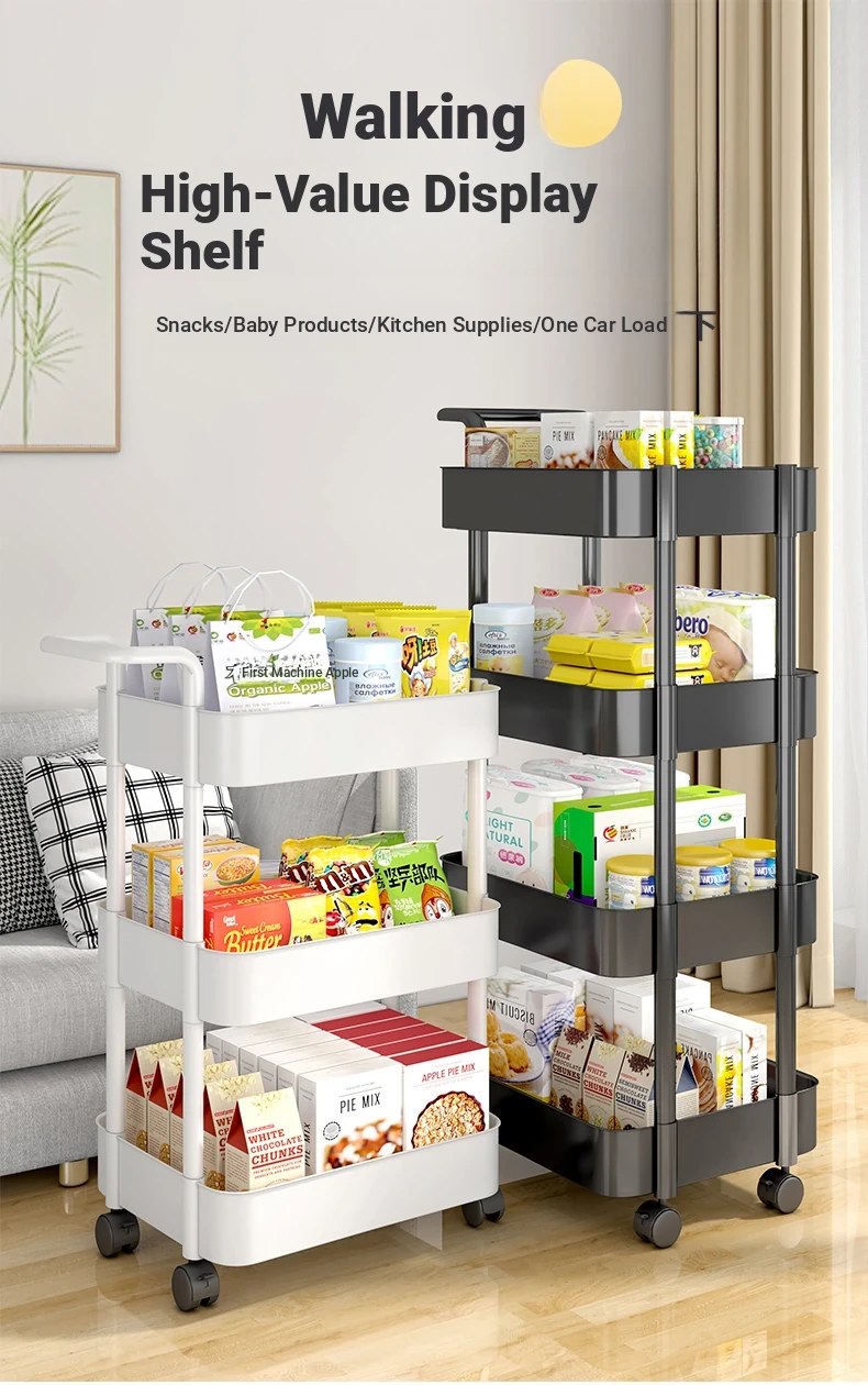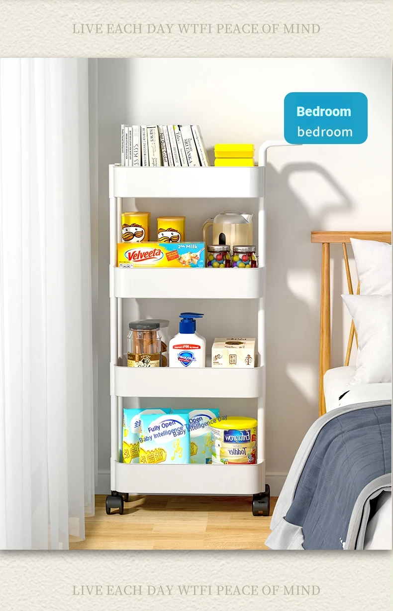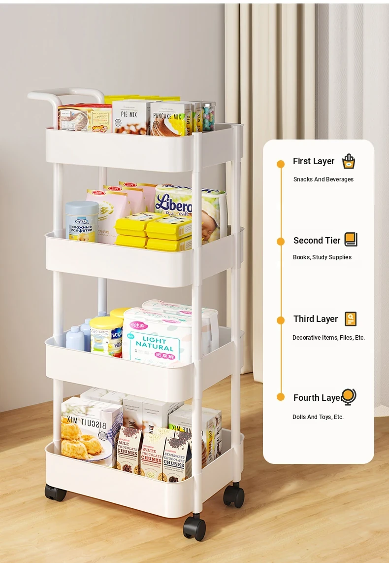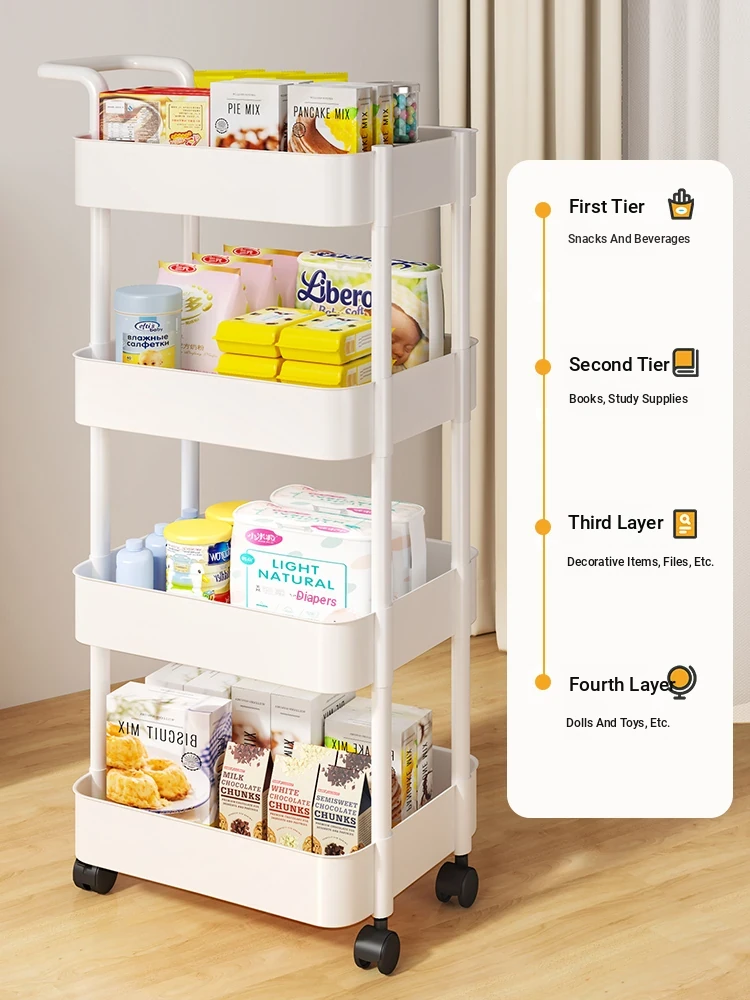 Multi-Layer Rolling Cart Storage Rack - Versatile Kitchen Snack Organizer, Mobile Bookshelf for Bedside or Tight Spaces, Perfect for Living Room Storage Solutions