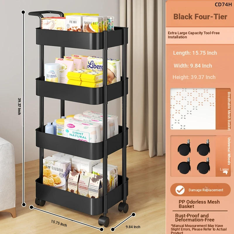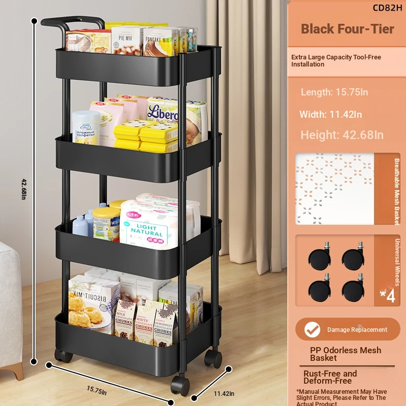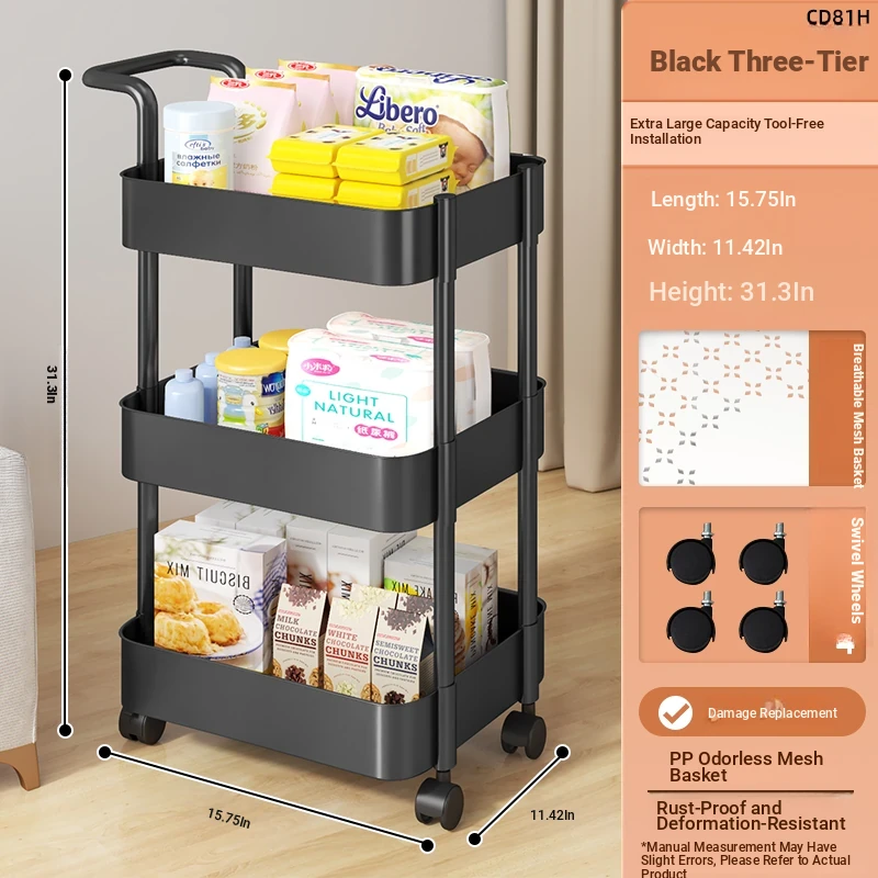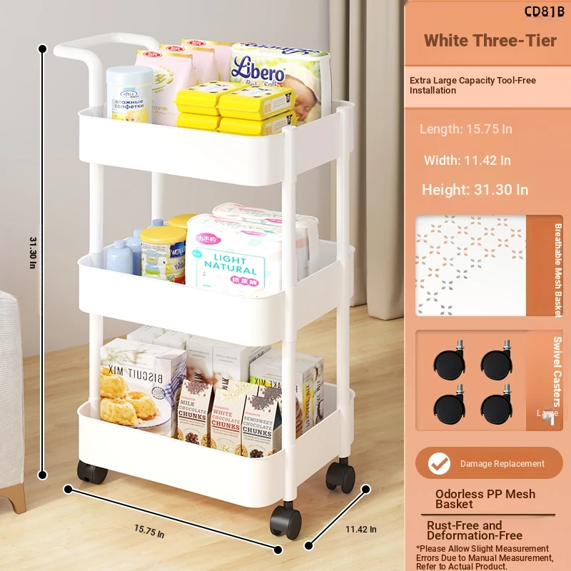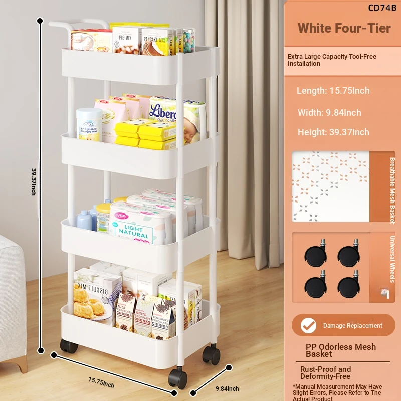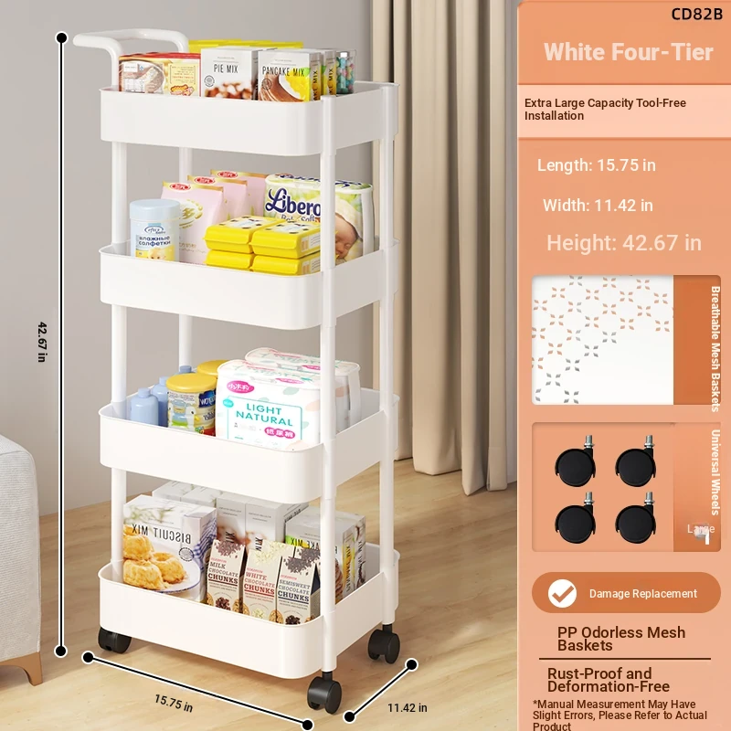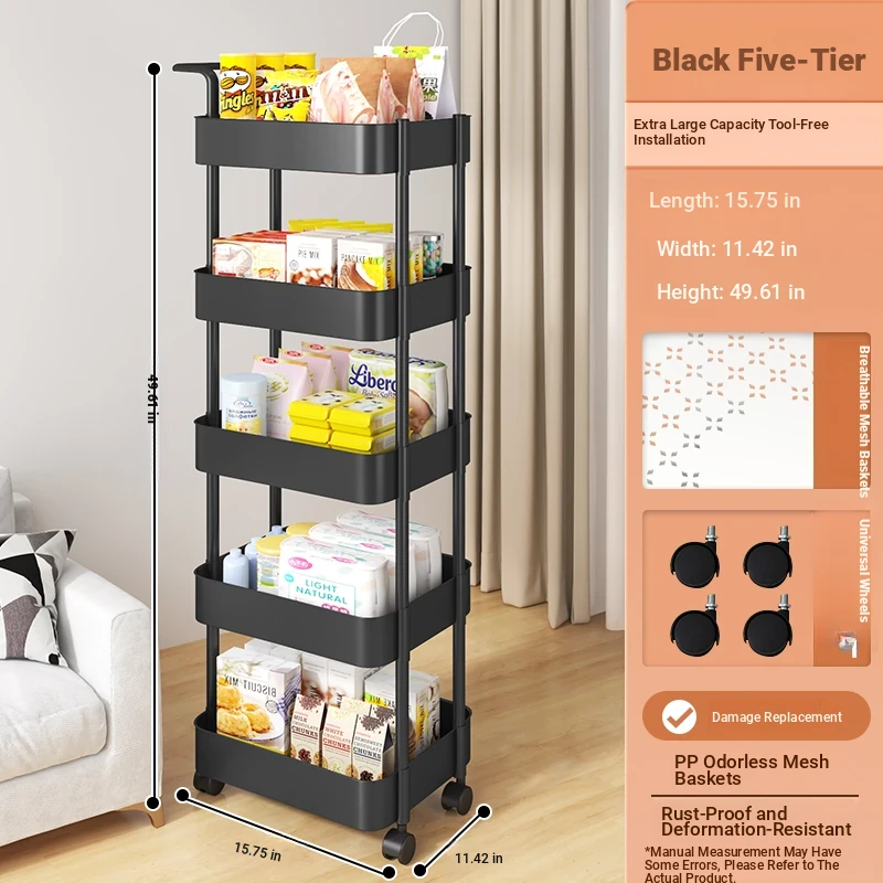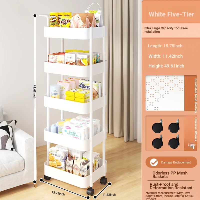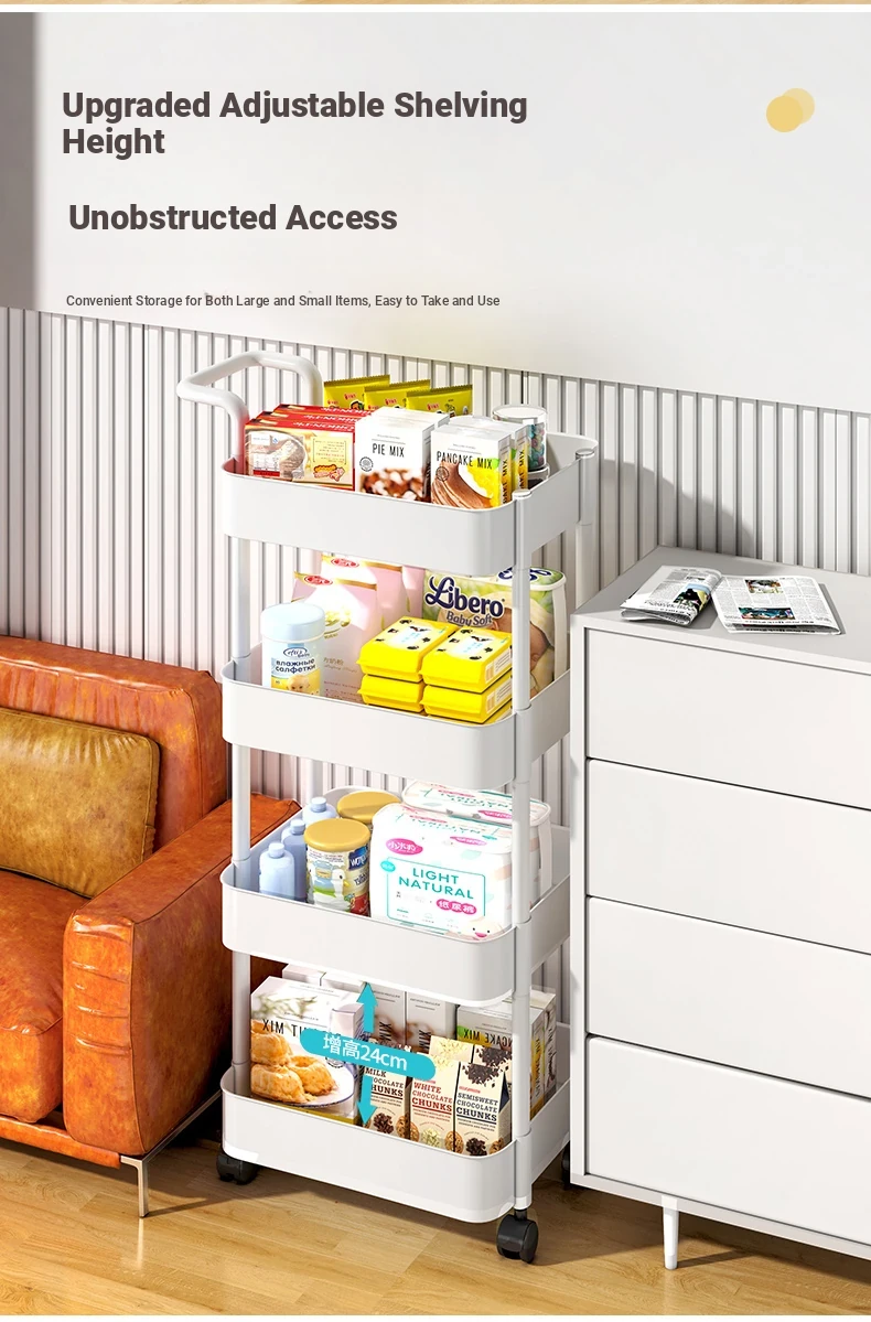 Multi-Layer Rolling Cart Storage Rack - Versatile Kitchen Snack Organizer, Mobile Bookshelf for Bedside or Tight Spaces, Perfect for Living Room Storage Solutions